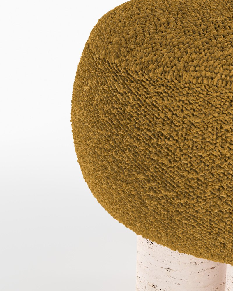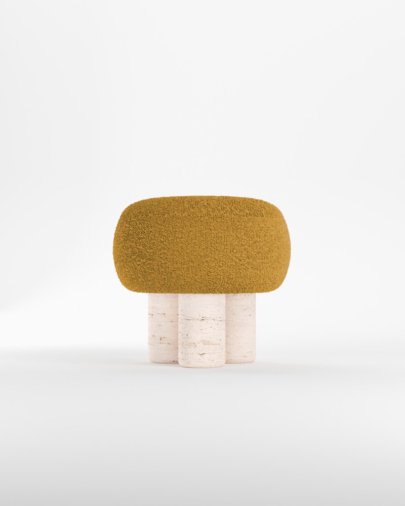 Hygge Stool Boucle Mustard Fabric and Travertino by Saccal Design House for Collector