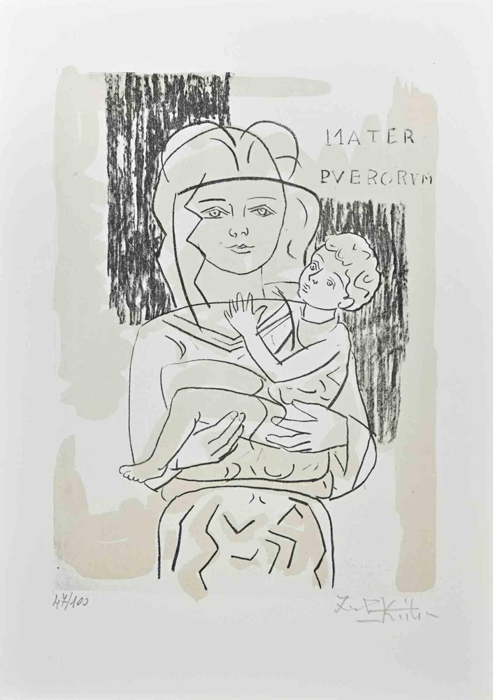 Ibrahim Kodra, Motherhood, 1980s, Lithograph