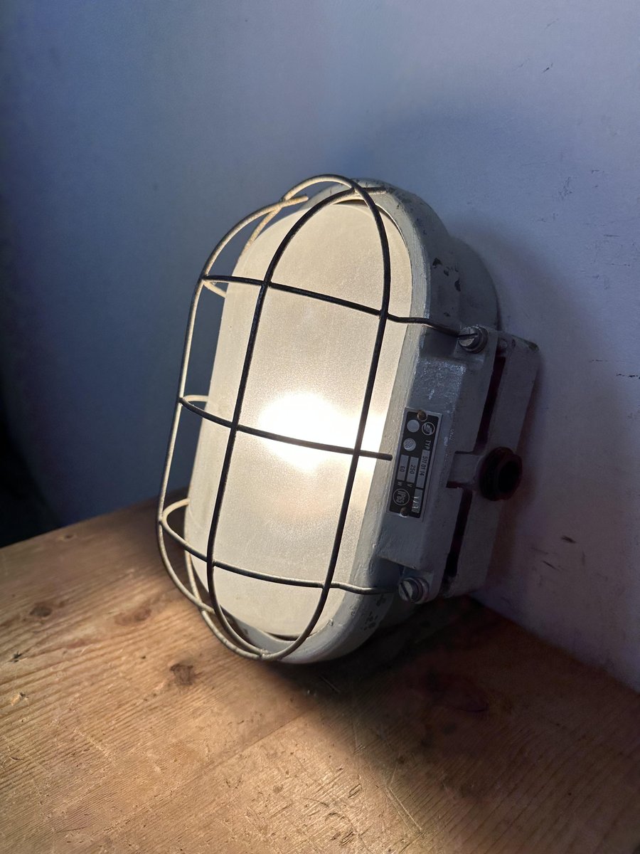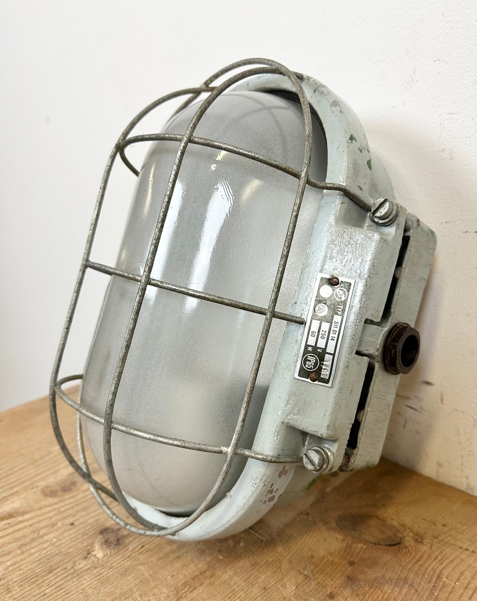 Industrial Cast Aluminium Wall Light with Milk Glass from Elektrosvit, 1970s
