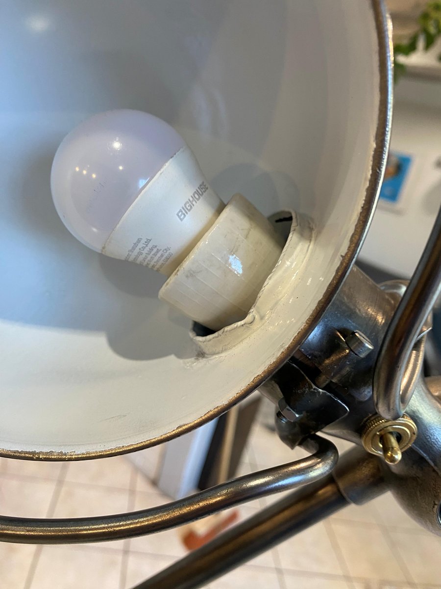 In 1950, frustrated by the lack of heavy-duty task lamps suitable for use in the workshops that he managed at the time, Domecq decided to design and produce his own industrial lamp. In the past, the absence of durable synthetic insulation materials caused the wiring in adjustable lamps to break easily, which contributed to many accidents. Domecq required something that he could fully articulate without interfering with the electrical wiring. The result, known as the Standard (1950), was a heavy-duty, steel lamp that could be twisted and turned in multiple positions, as the copper contacts ensured rotation up to the mechanical limit of each joint.