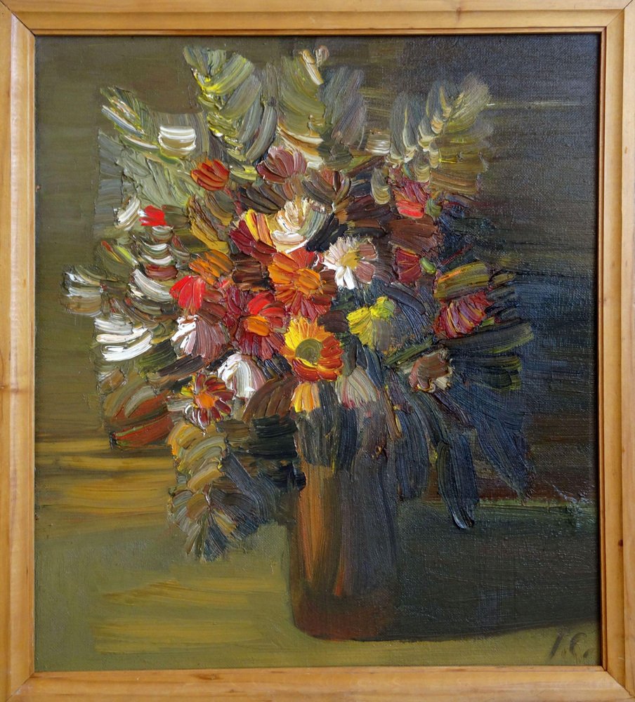 Inta Celmina, Bouquet of Flowers in a Vase, Oil on Cardboard, 1990s