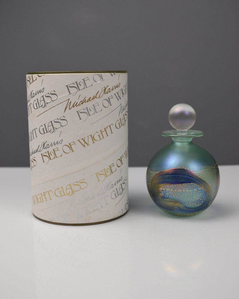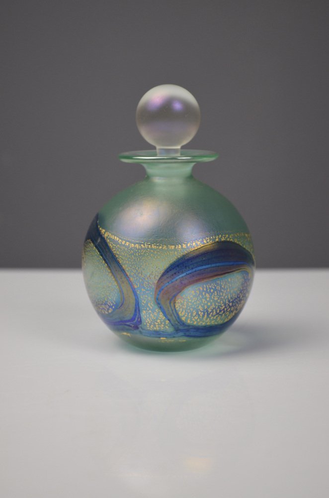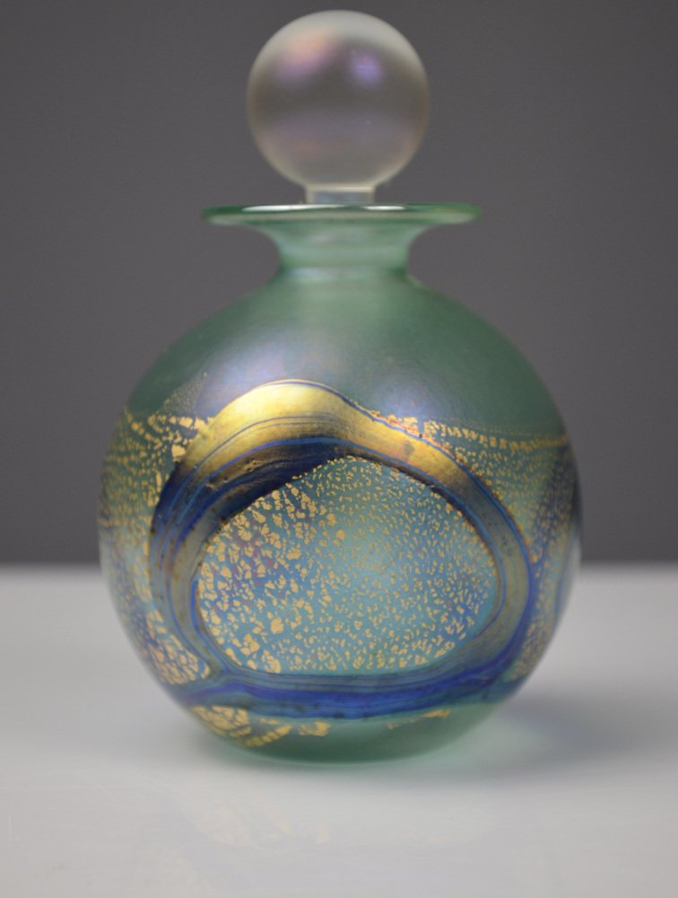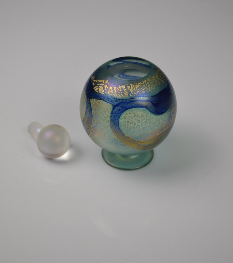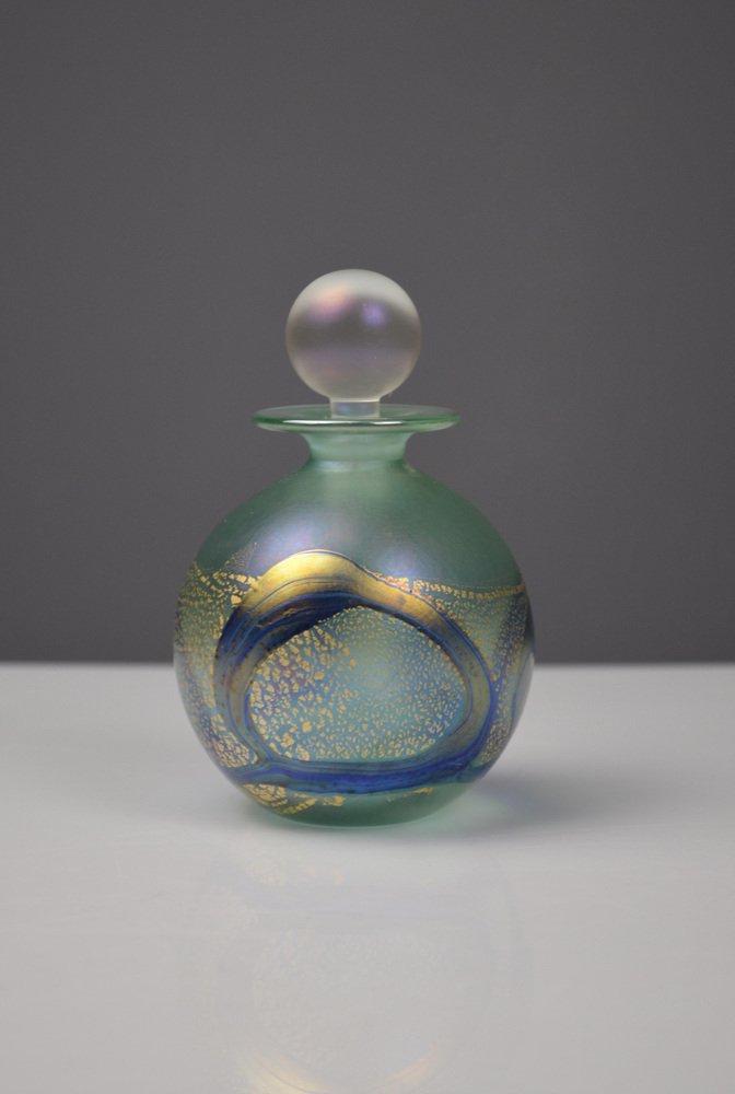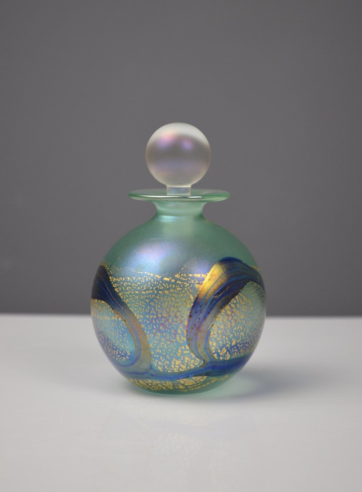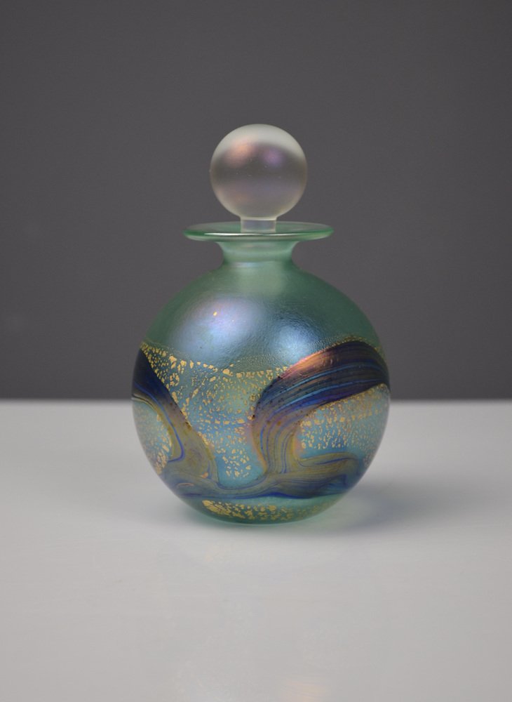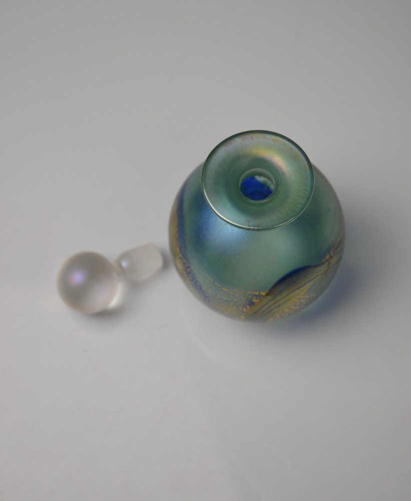 Iridescent Green and Blue Glass Perfume Bottle from Isle of Wight Studio Glass, 1970s