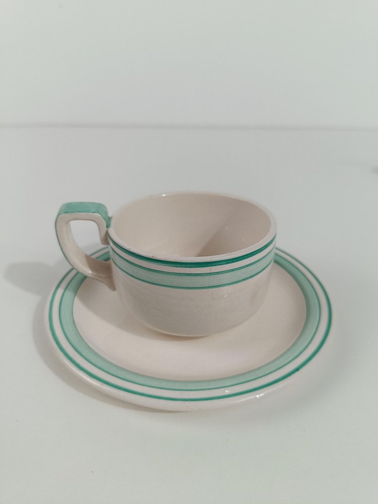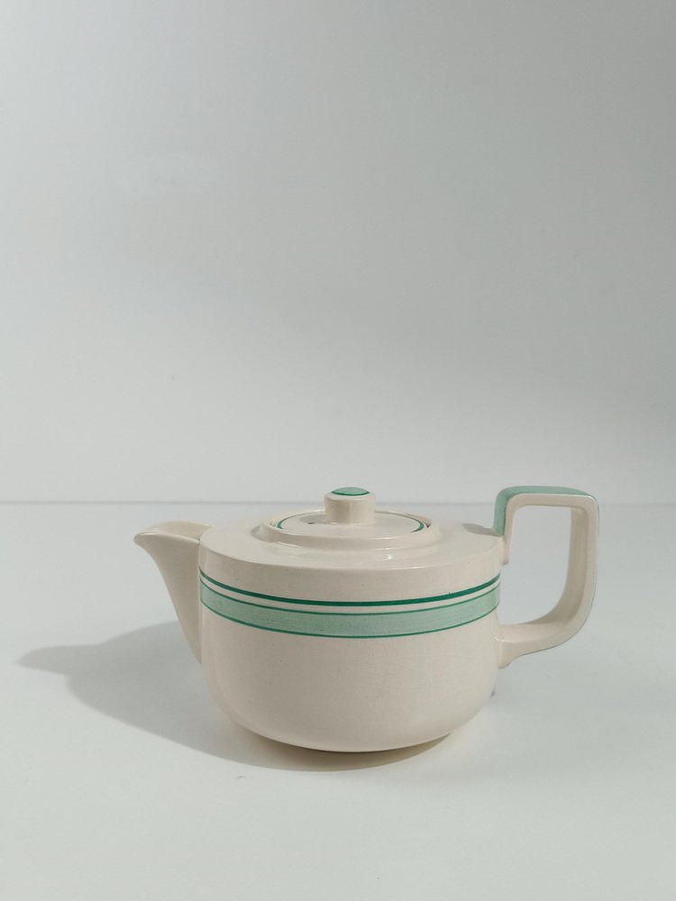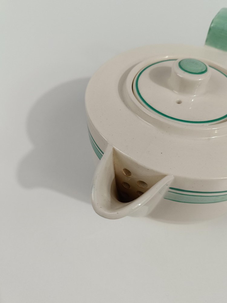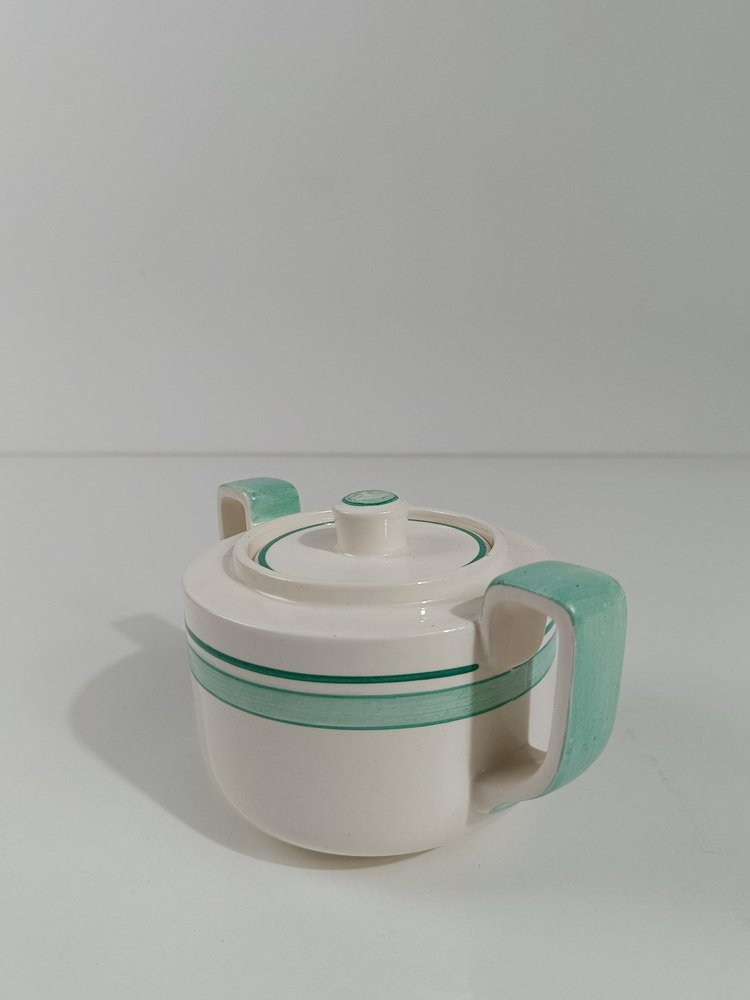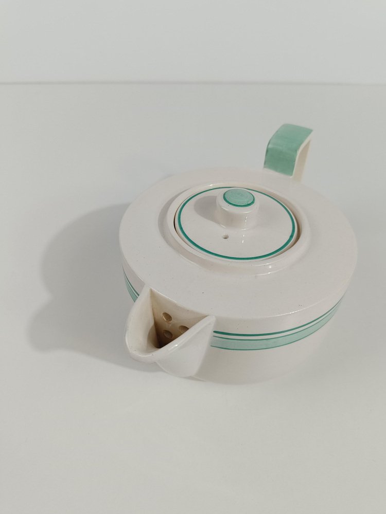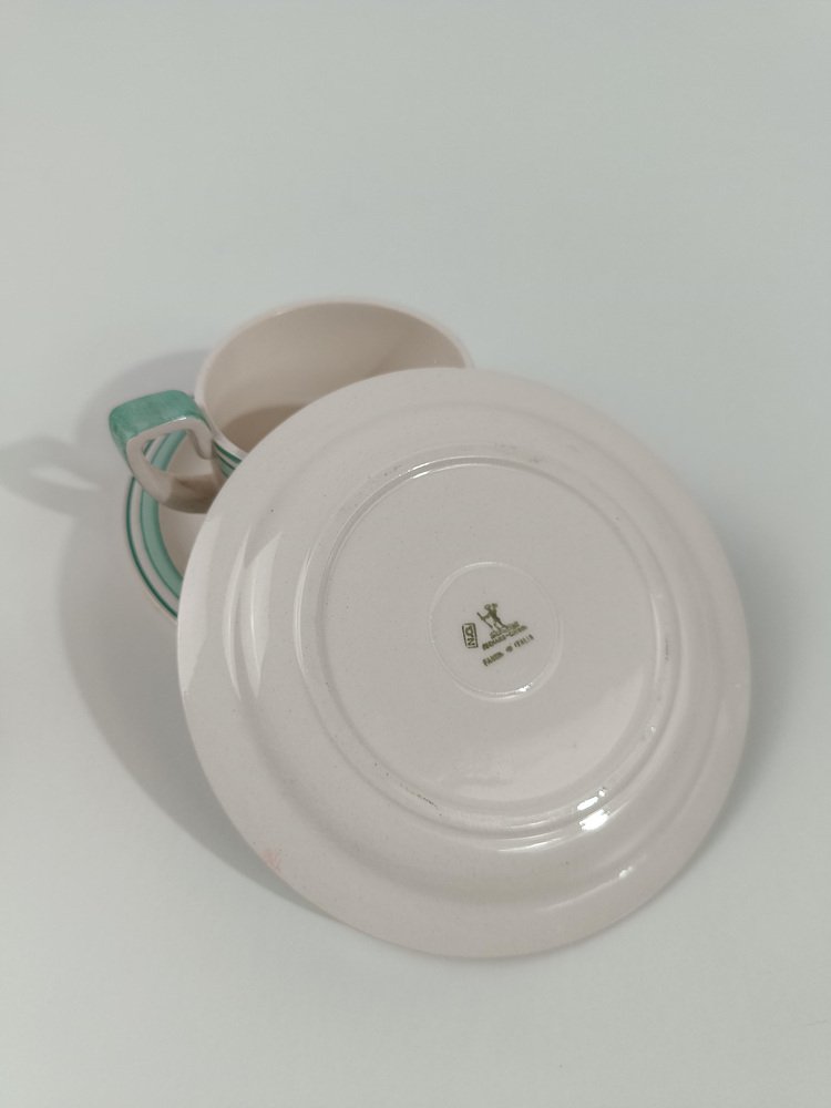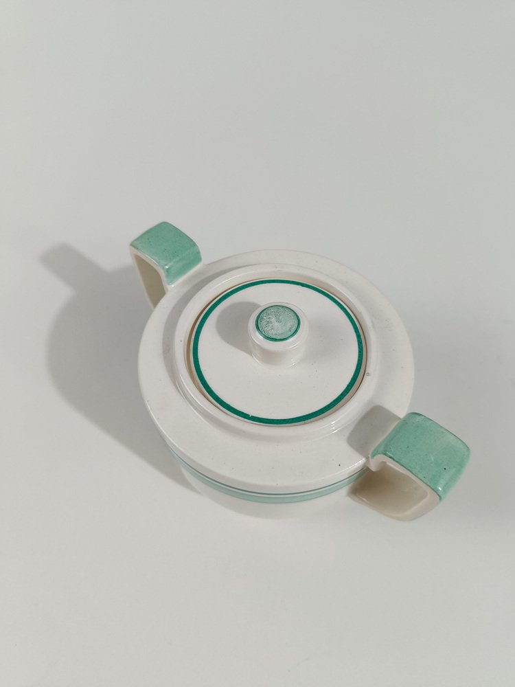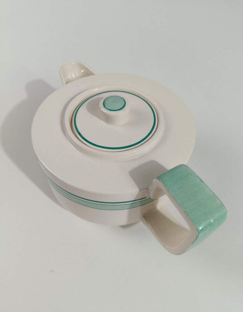 Italian Art Deco Tea Set attributed to Richard Ginori in White and Tiffany Green Majolica, 1930s, Set of 10