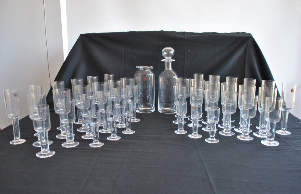 Italian Asymmetrical Murano Glass Glasses by Carlo Moretti, 1986, Set of 44