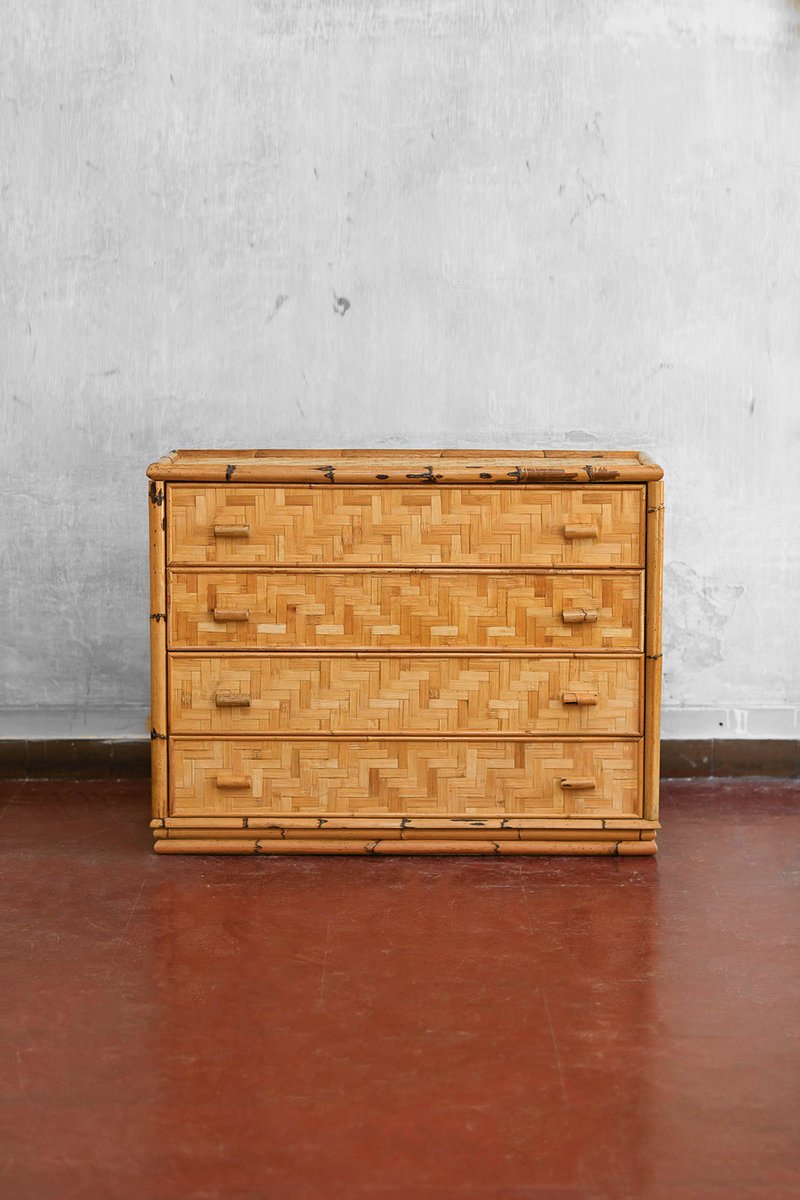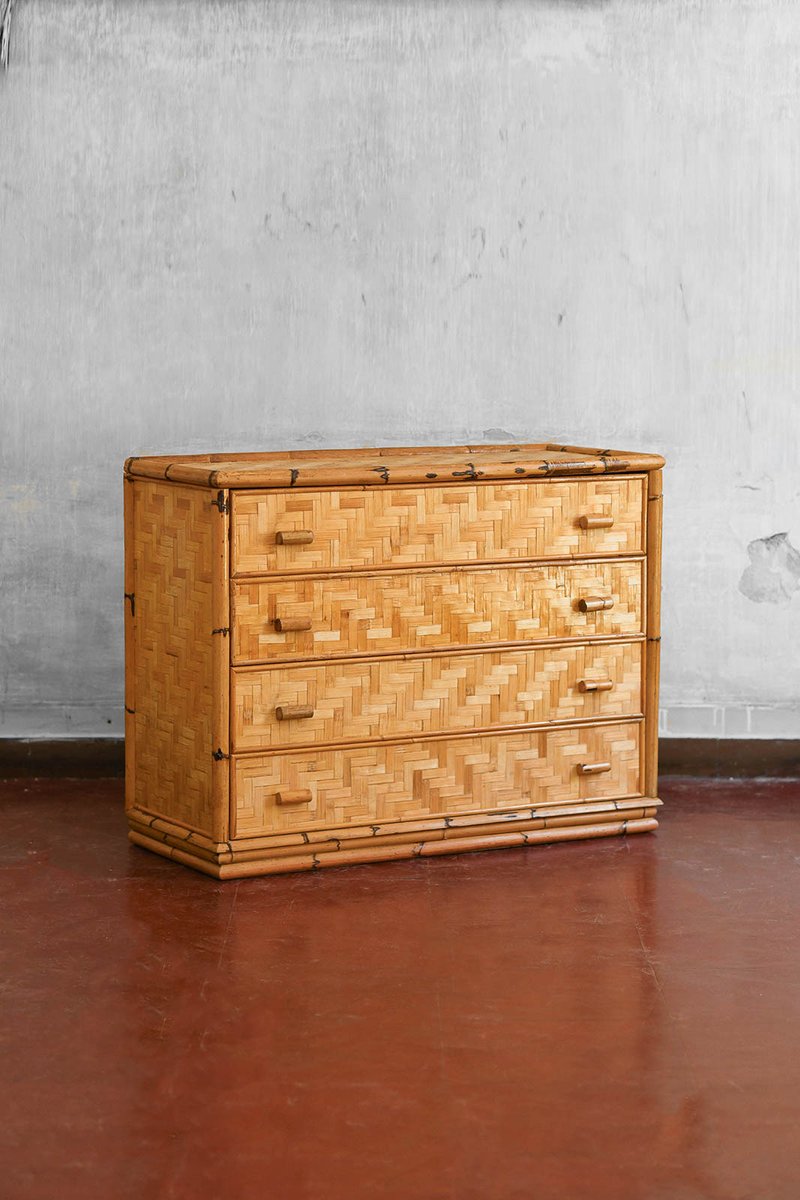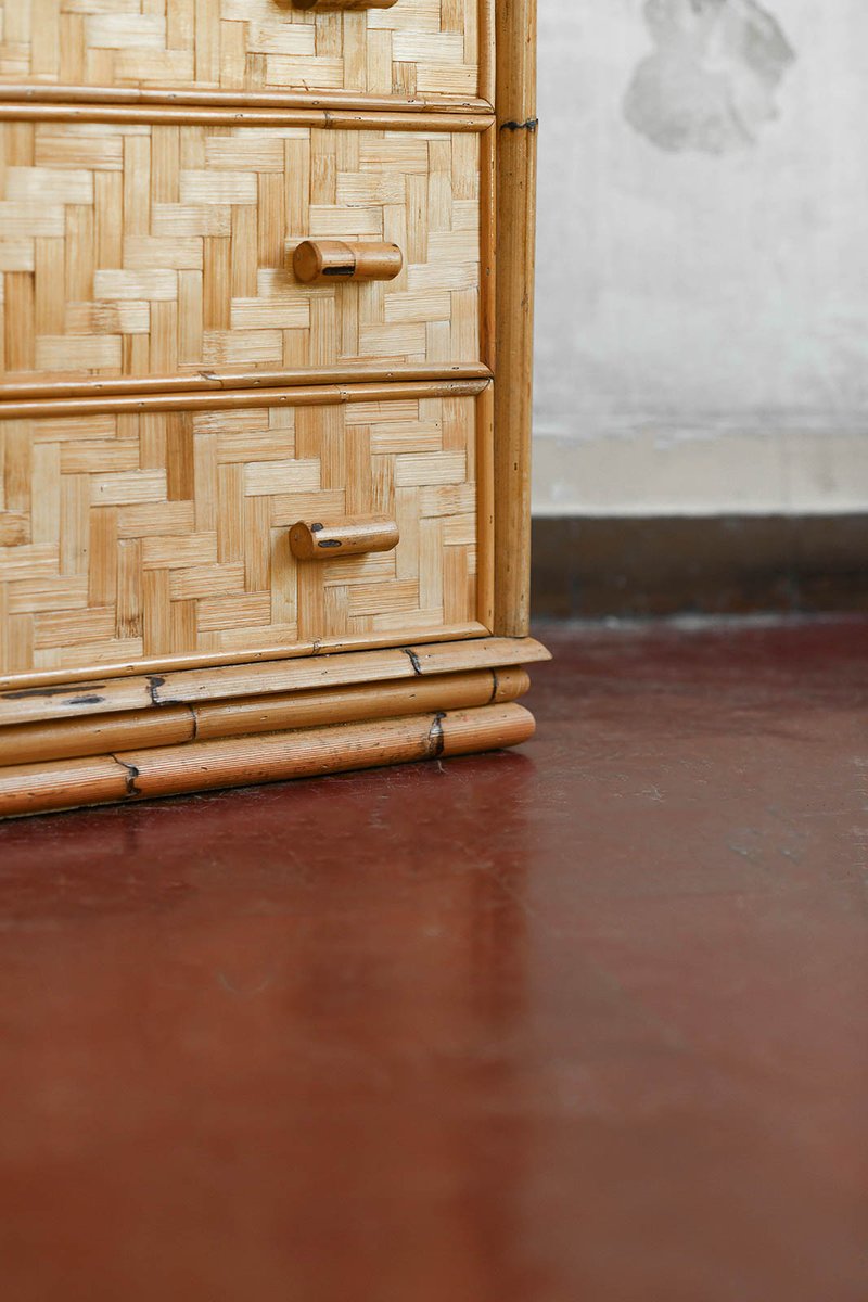 Italian Bamboo and Pressed Bamboo Chest of Drawers, 1980