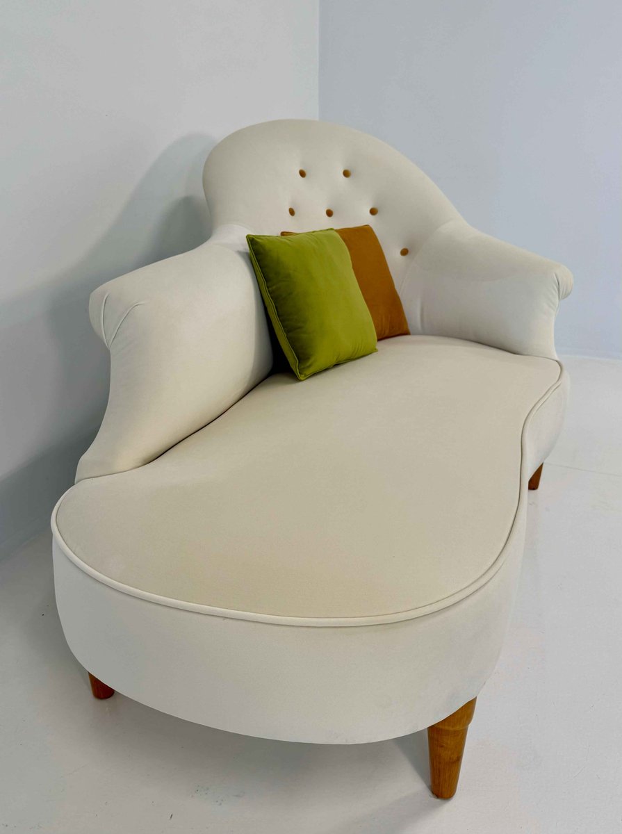 Italian Cherry Wood and Velvet Chaise Longue in Three Colors, 1960s