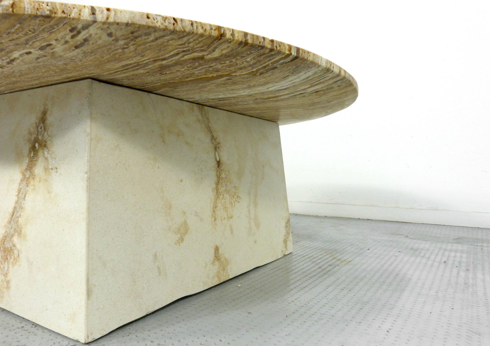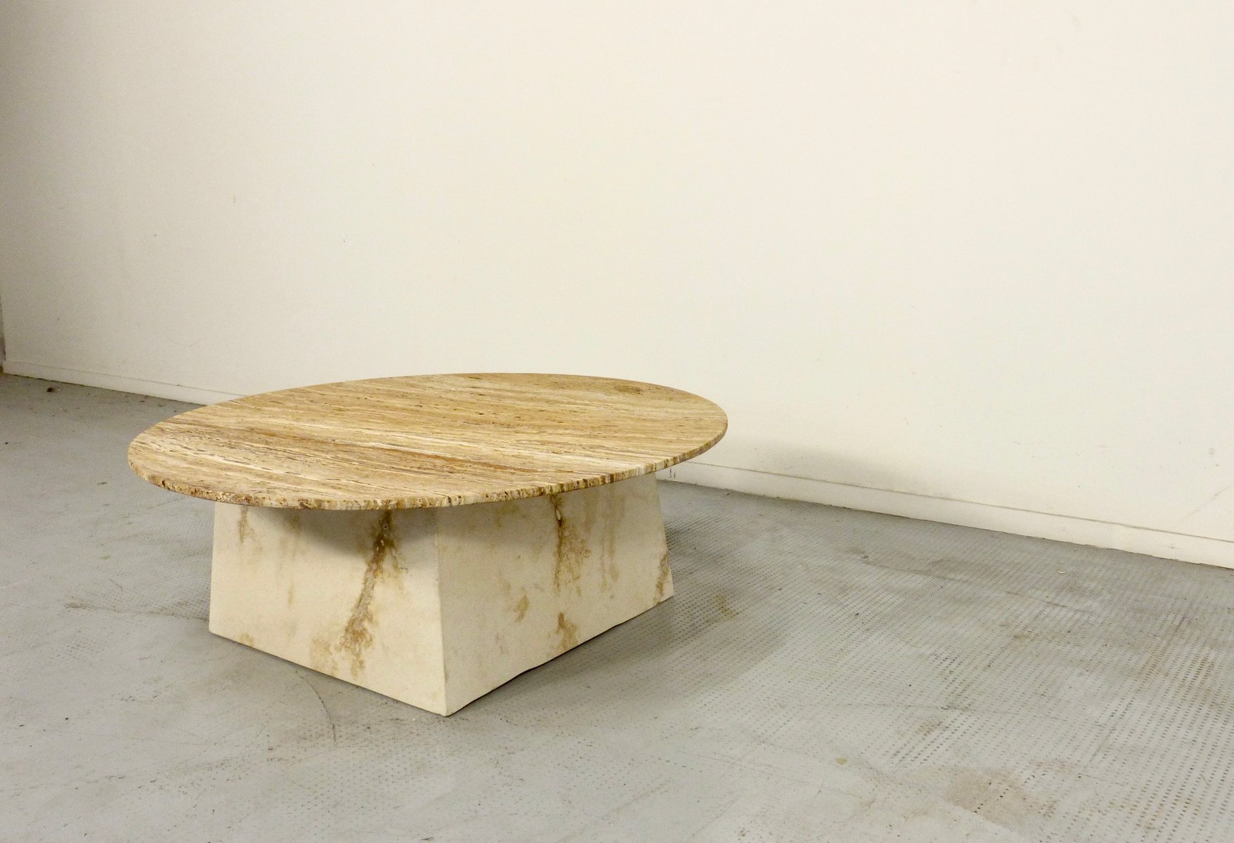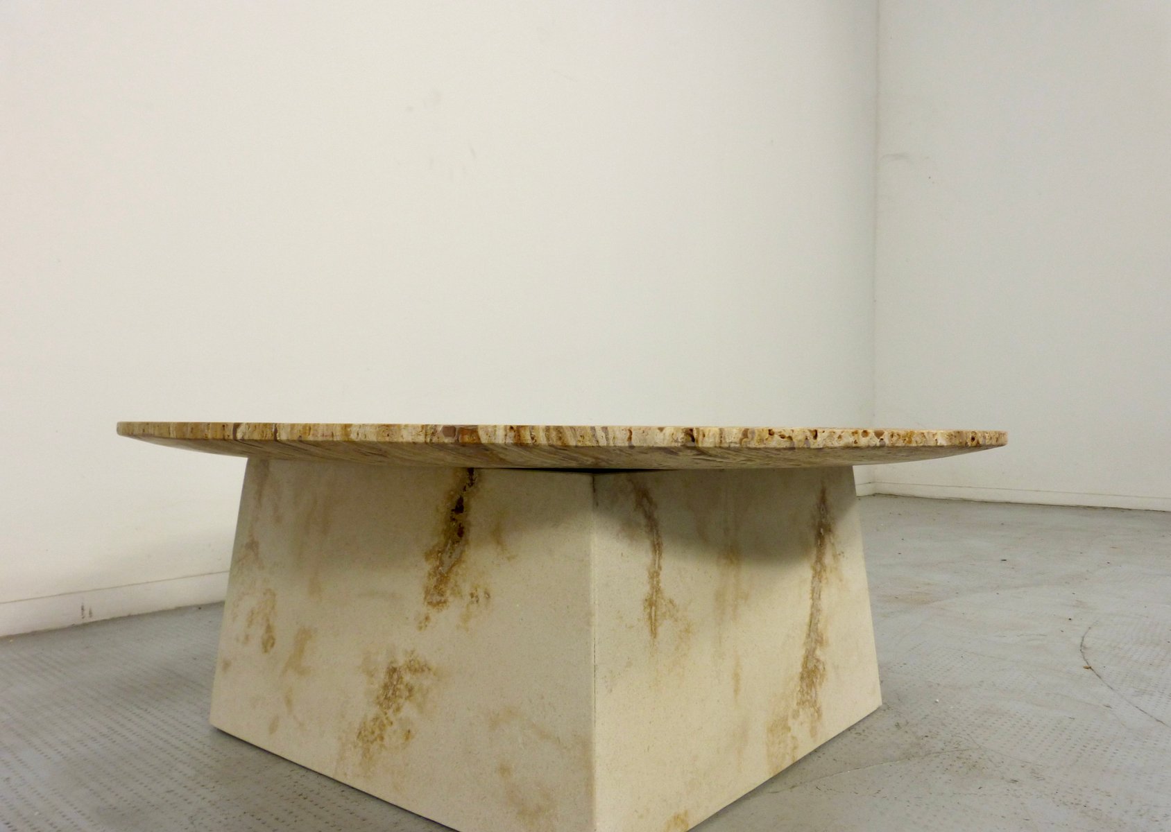 Italian Geometric Travertine Coffee Table, 1970s