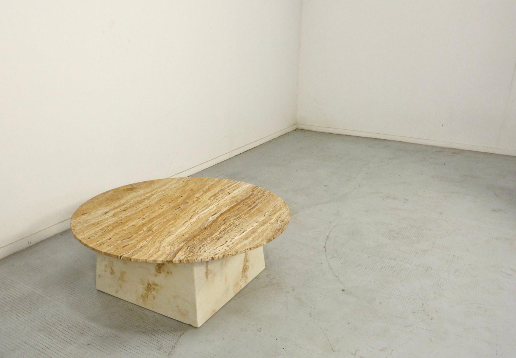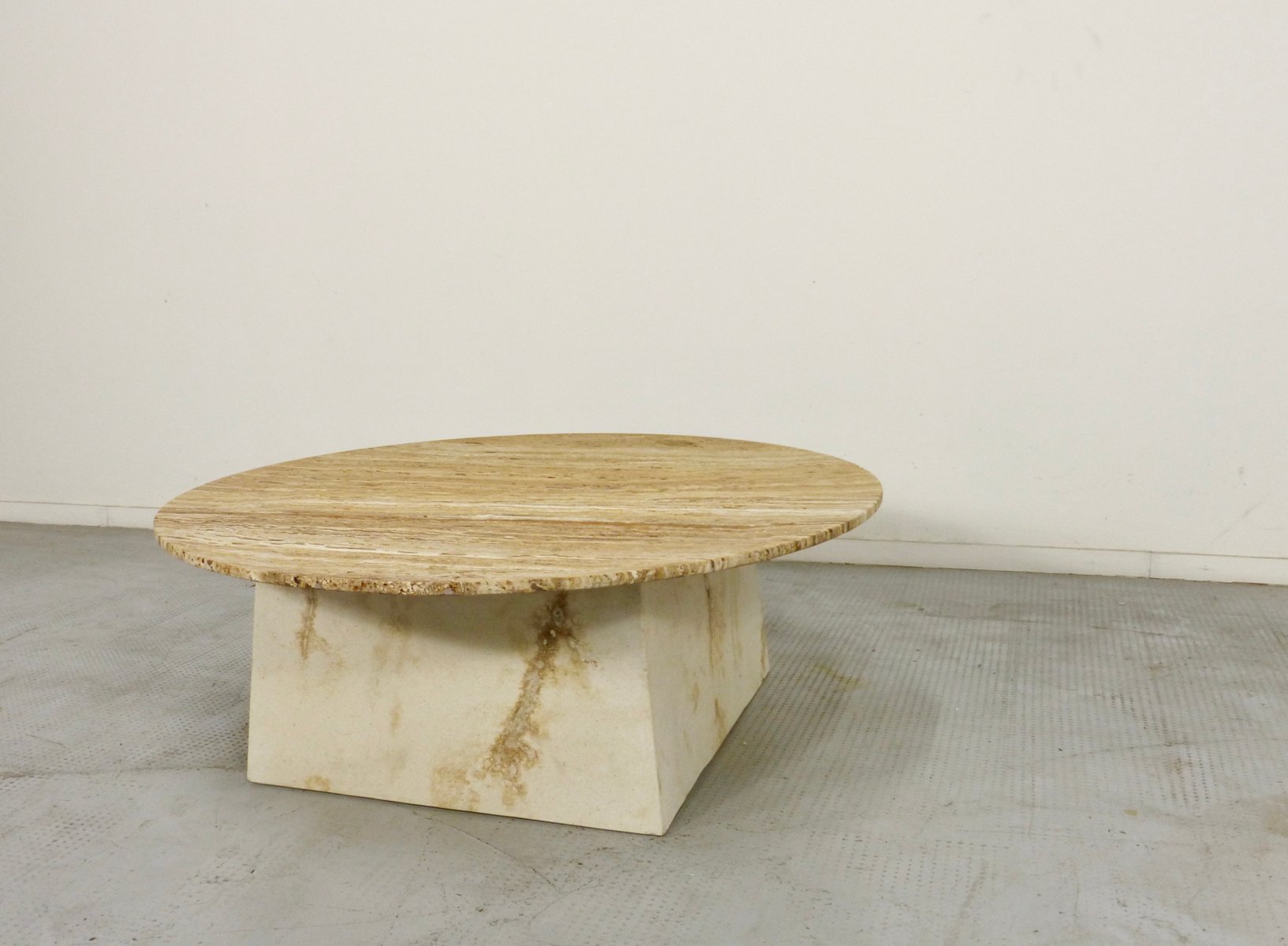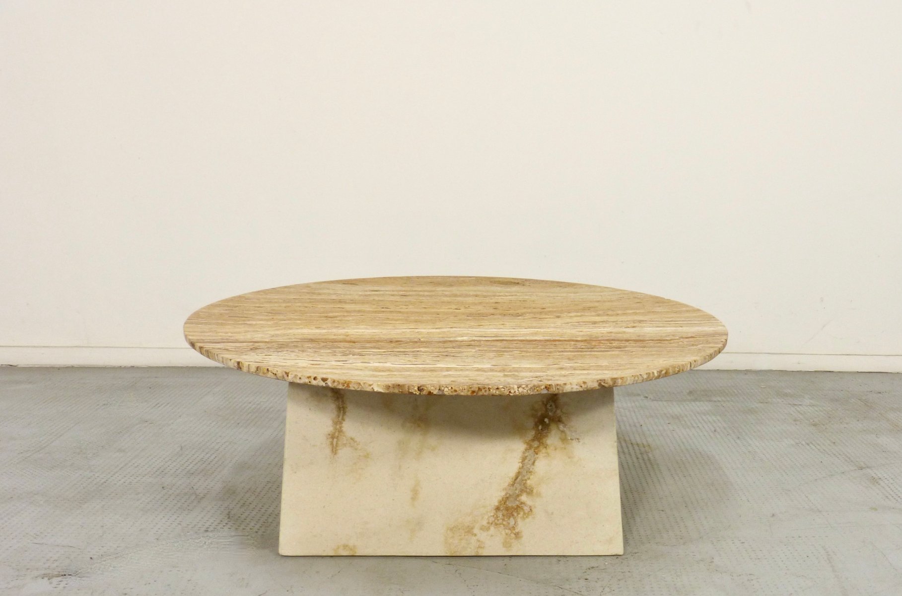 Italian Geometric Travertine Coffee Table, 1970s