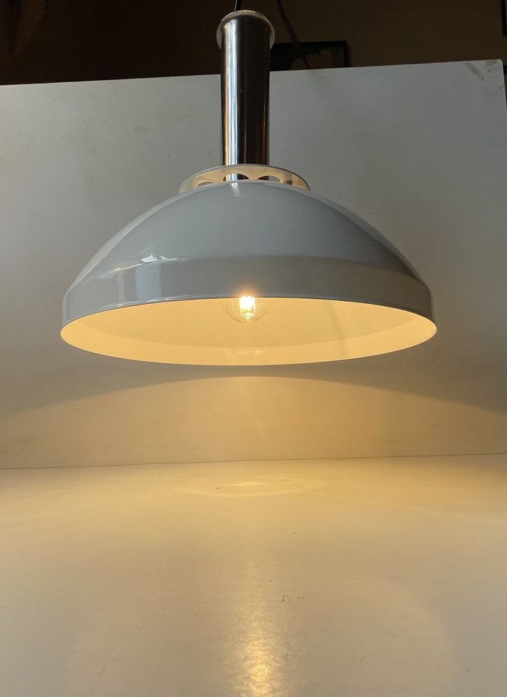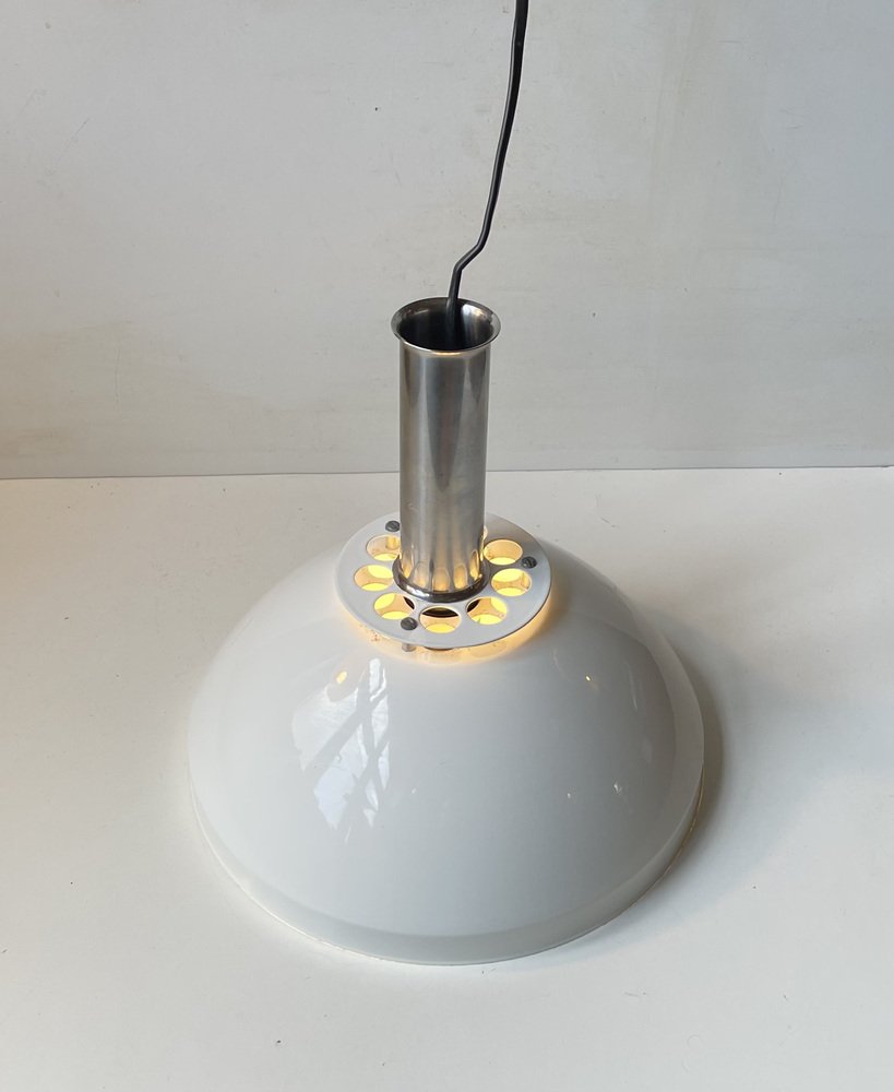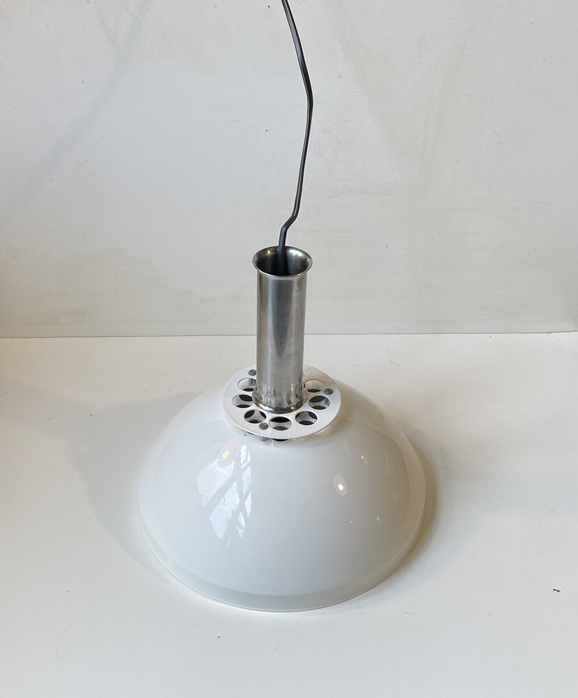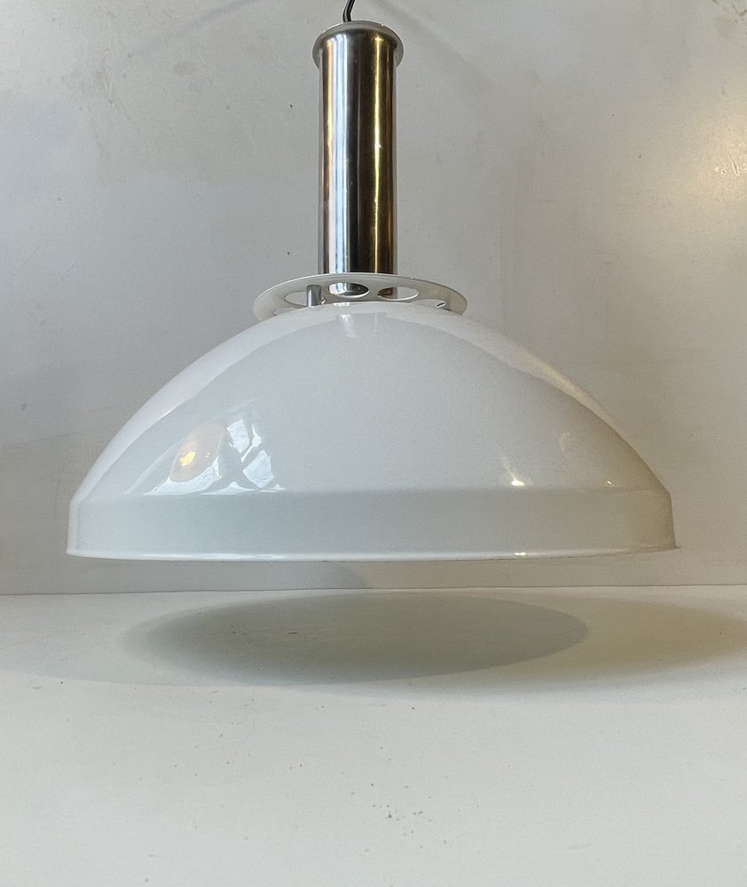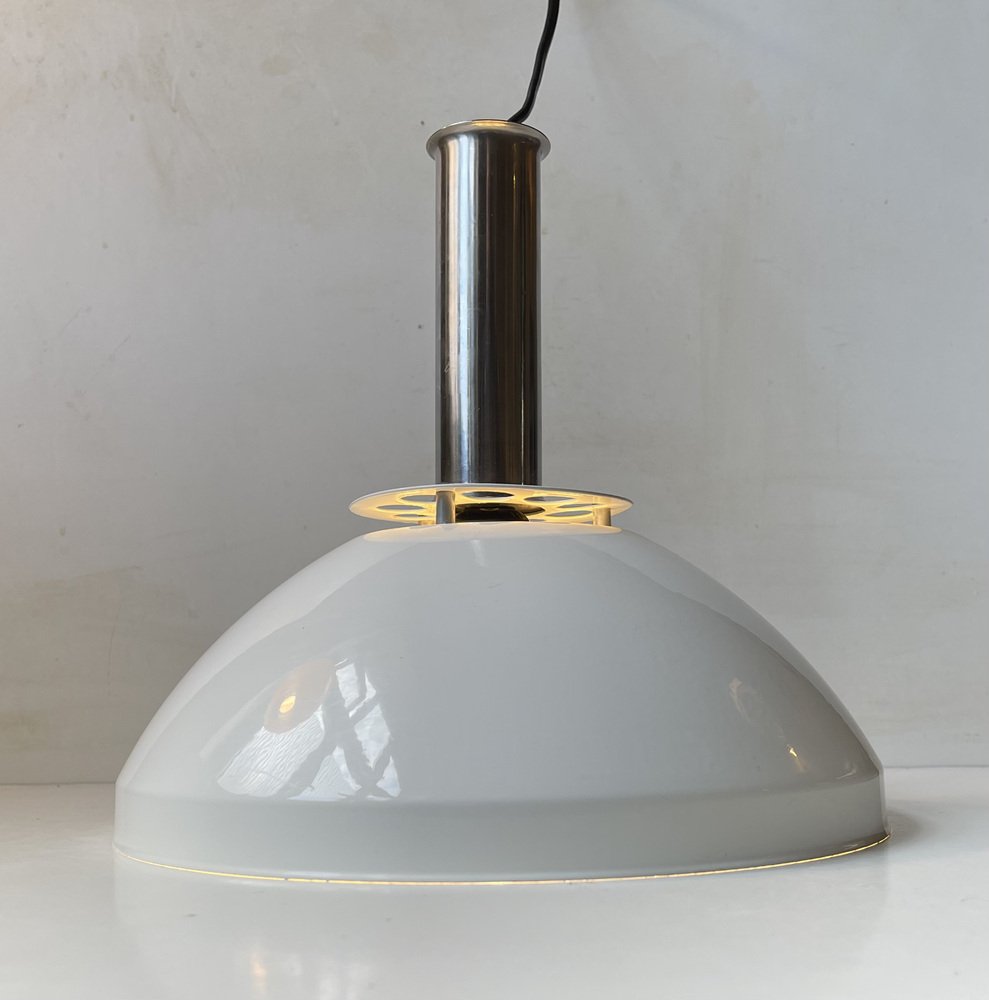 Italian Modern Ceiling Lamp in White Enamel and Chrome Plating, 1970s