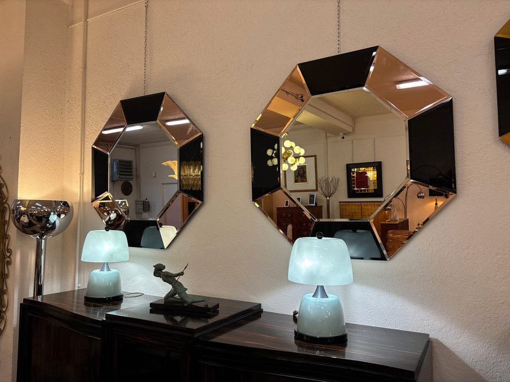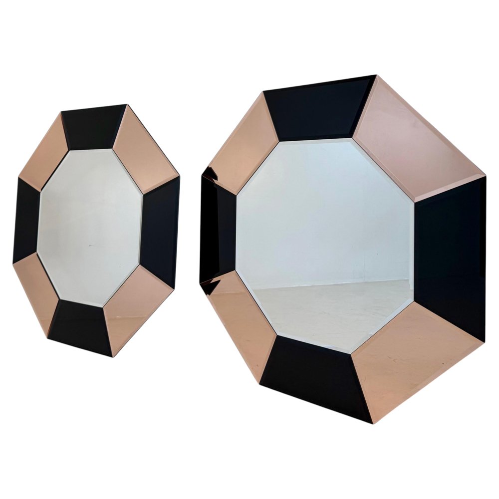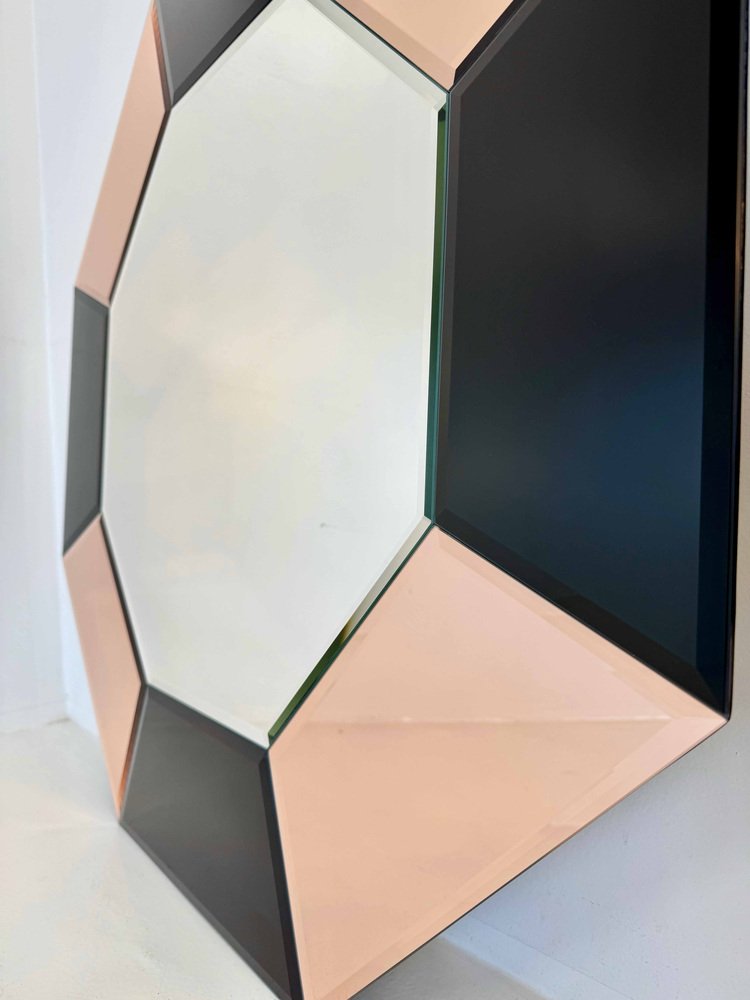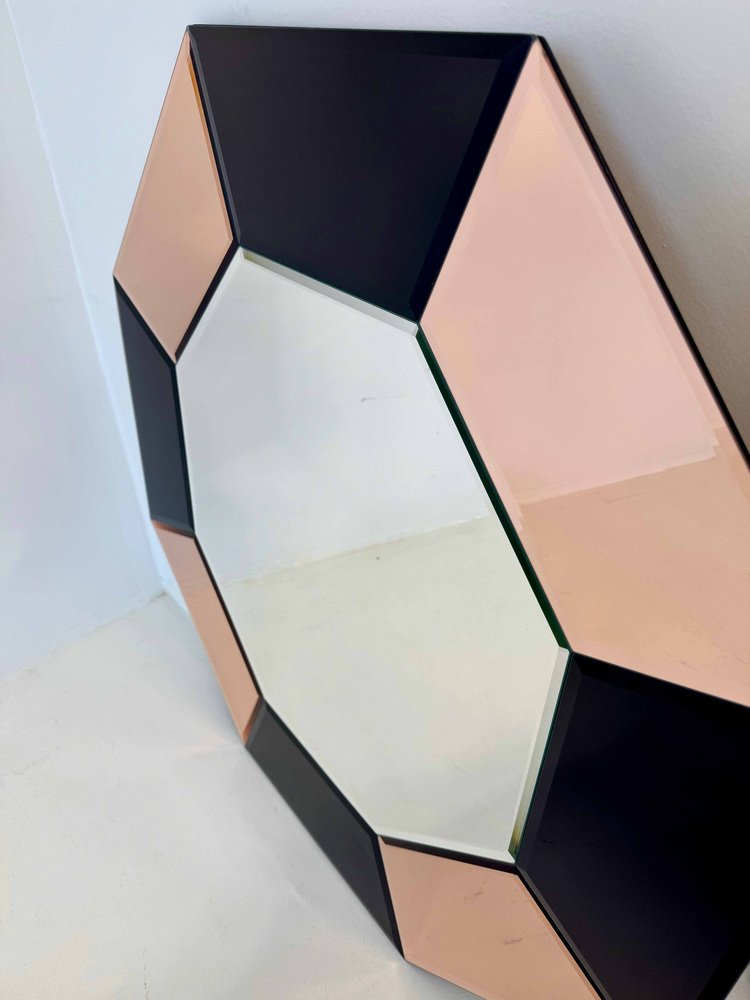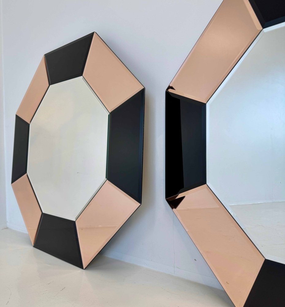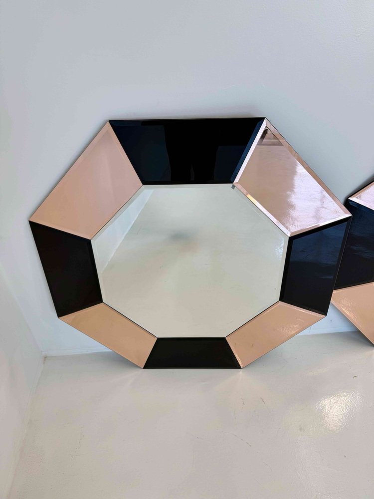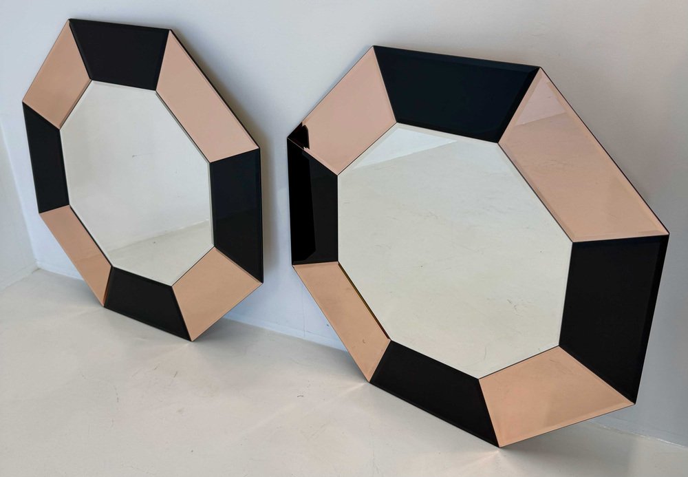 Italian Octagonal Wall Mirrors with Black and Pink Geometric Frames, 2000s, Set of 2