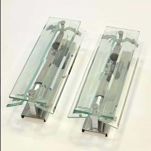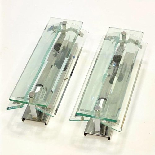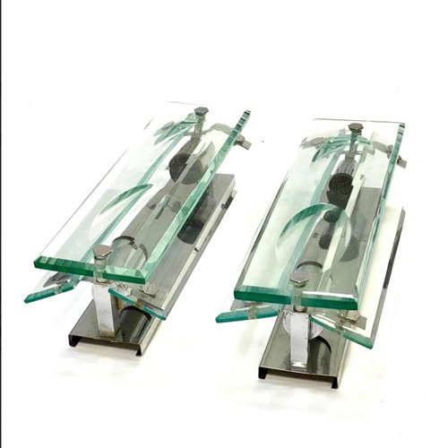 Italian Wall Lights in the style of Fontana Arte, 1950s, Set of 2