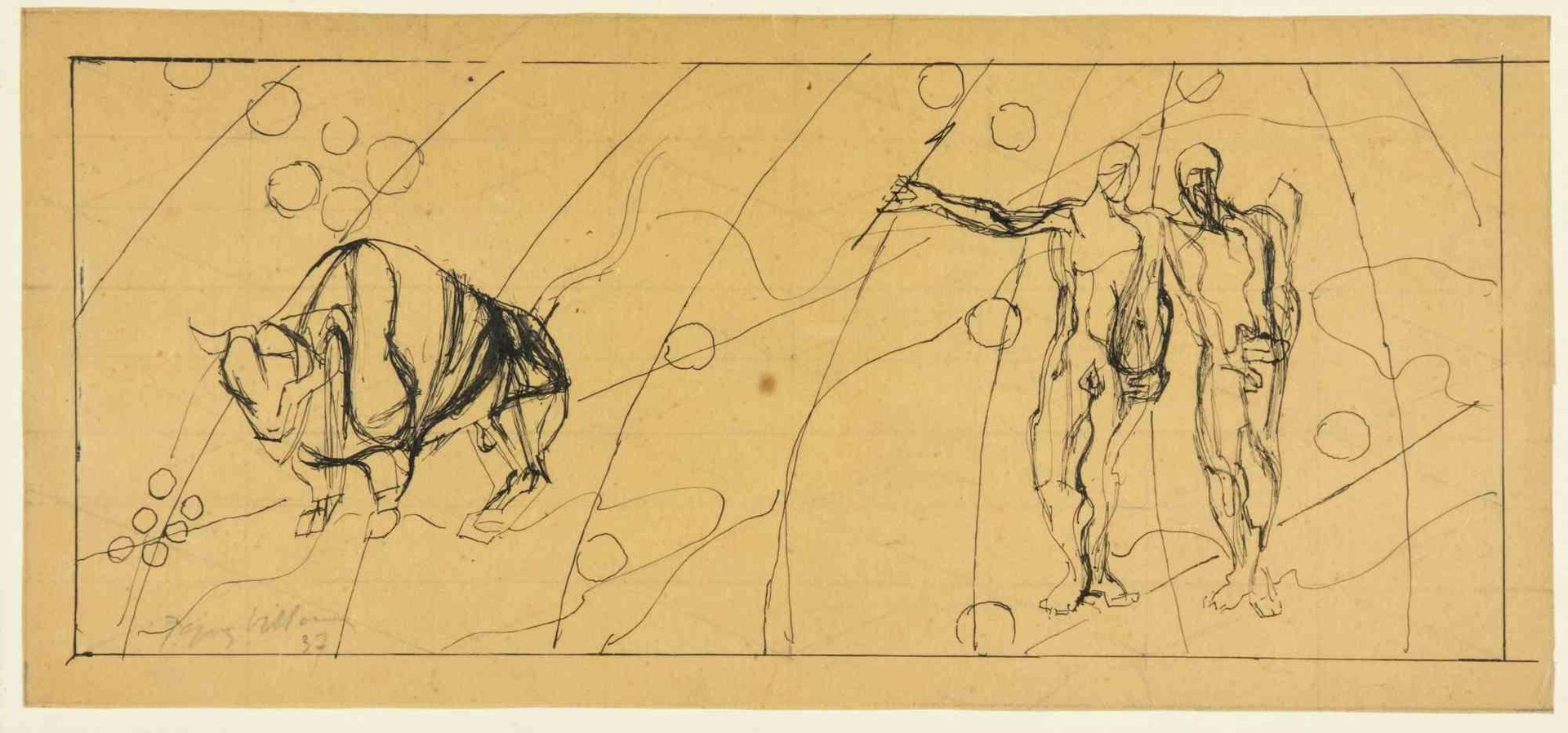 Jacques Villon, Signs of the Zodiac, Taurus and Gemi, Ink Drawing, 1937