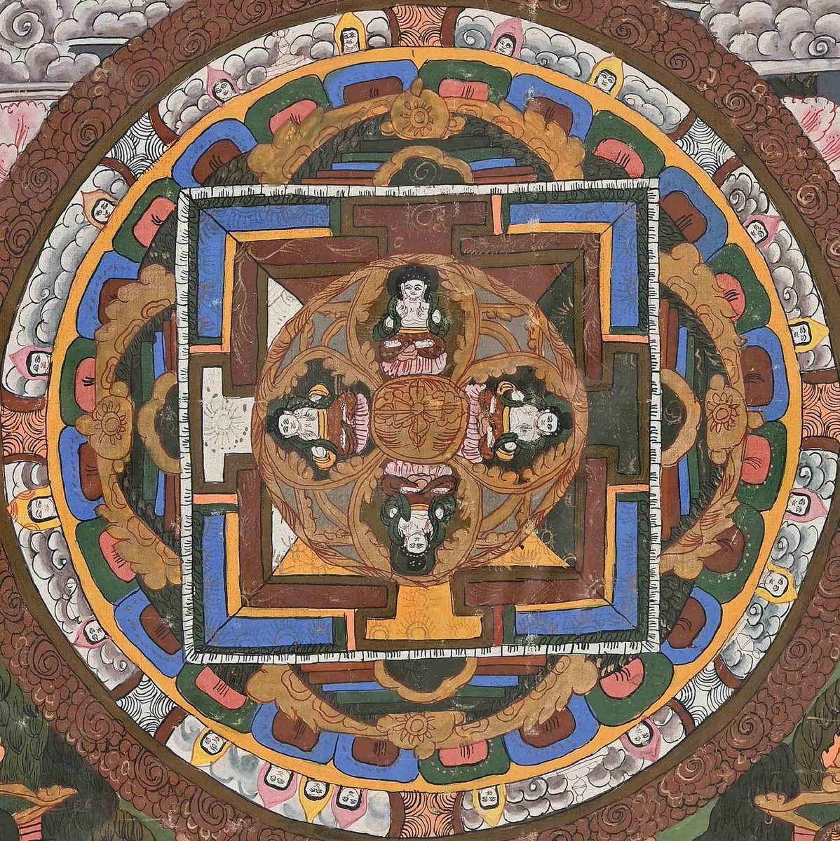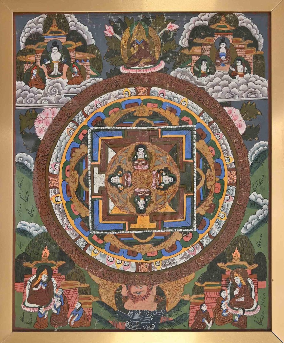 Jean Boullet, Vintage Tibetan Thangka, Mixed Media, Mid-20th Century