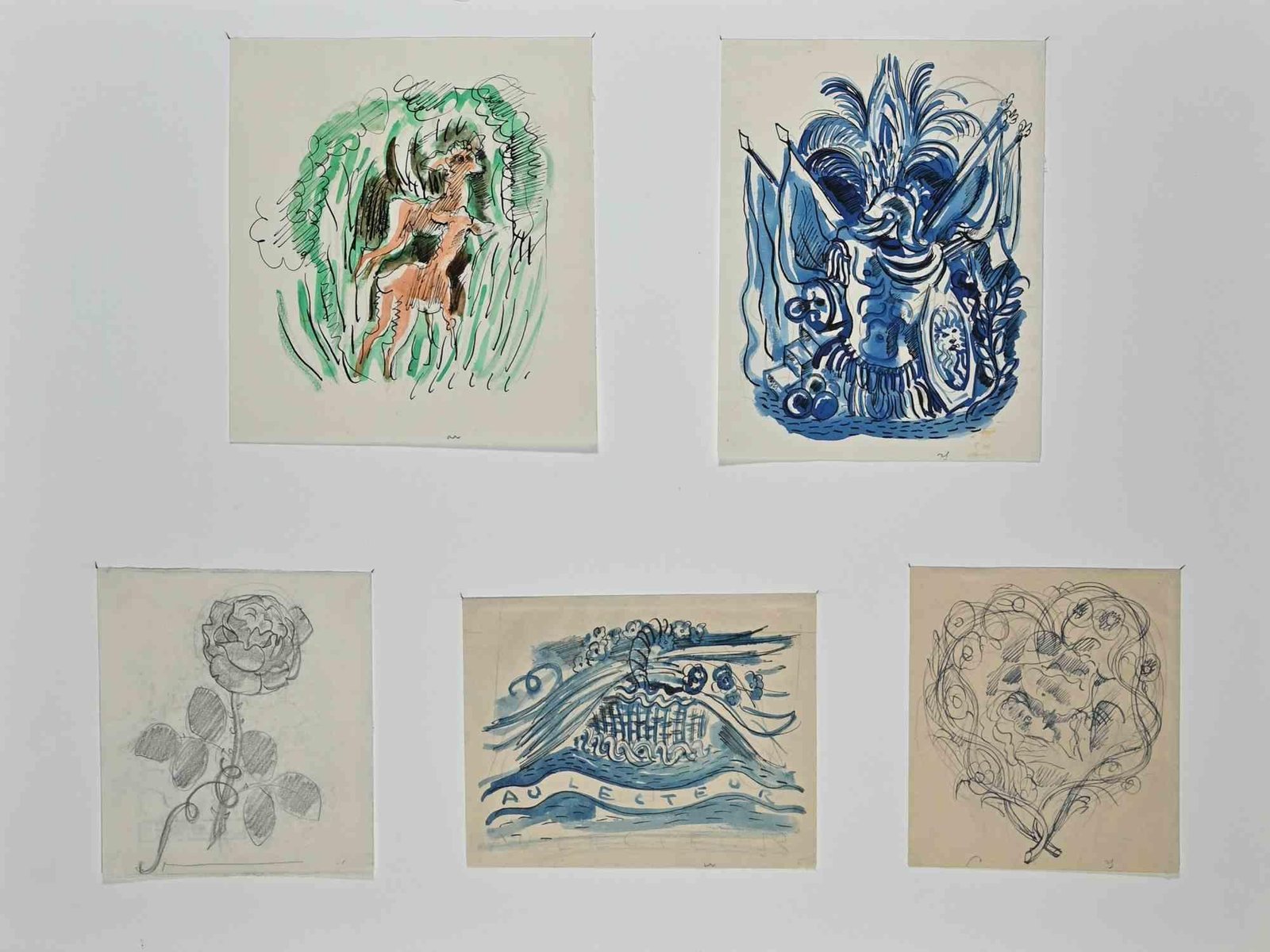 Jean Gabriel Daragnès, Compositions, Ink & Watercolor, Early 20th Century