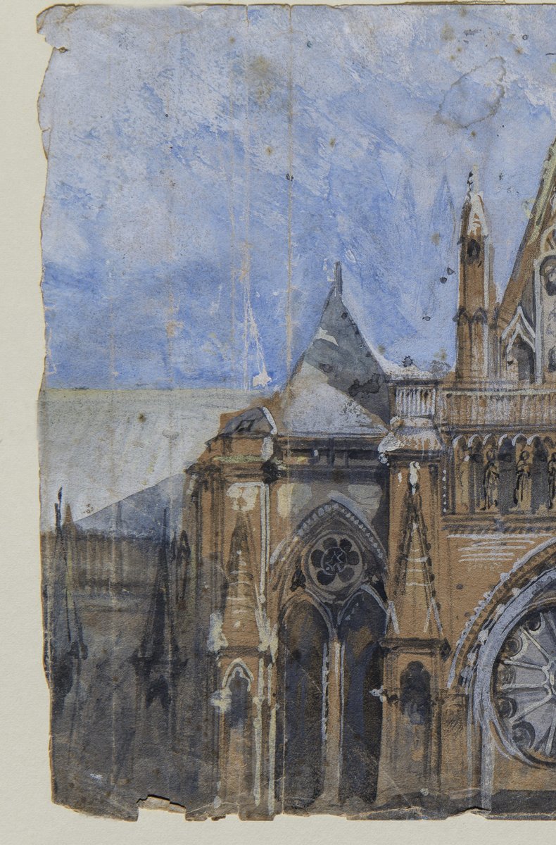 Before Ruskin began Modern Painters, John James Ruskin had begun collecting watercolours, including works by Samuel Prout and Turner.