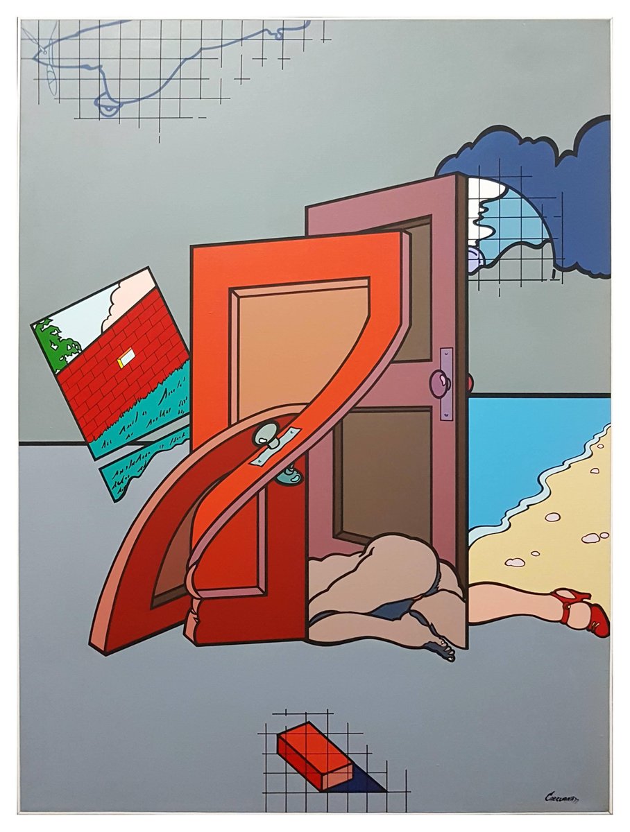 Jorge Carruana, Palmas I: Woman/Doors, 1977, Acrylic on Canvas