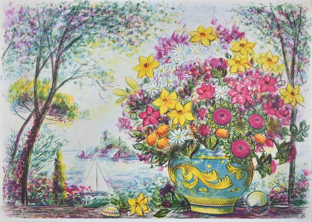 Jovan Vulic, Flowerpot, Original Lithograph, 1988