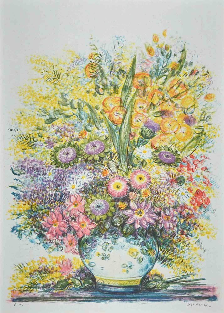 Jovan Vulic, Flowerpot, Original Lithograph, 1988