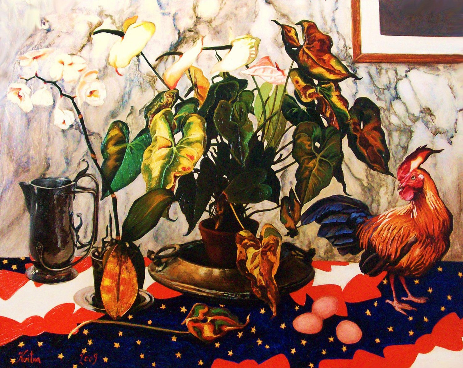 Kristine Kvitka, Still Life with a Cock, Oil on Canvas, 2009