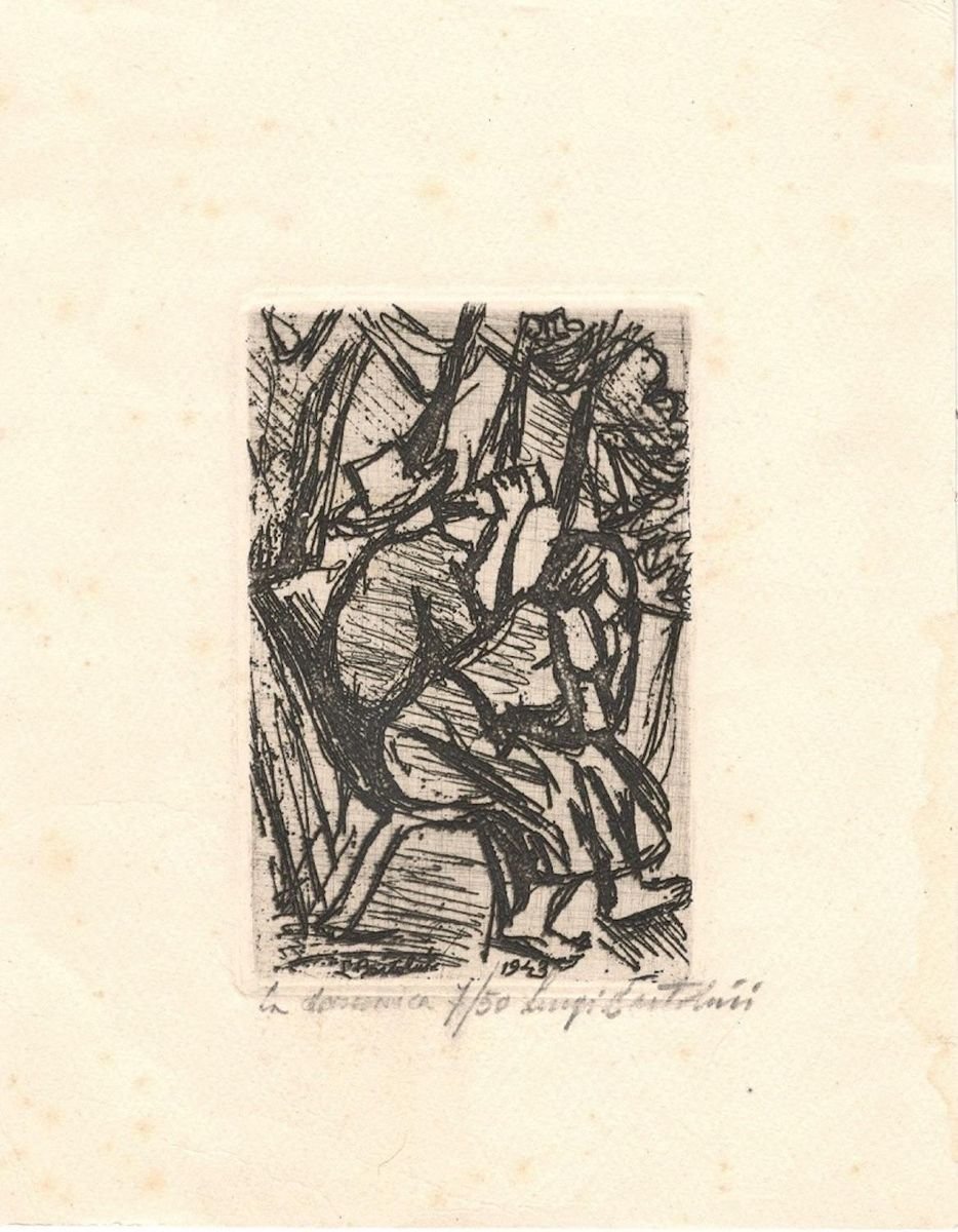 La Domenica - Original Etching by Luigi Bartolini - 1943 1943