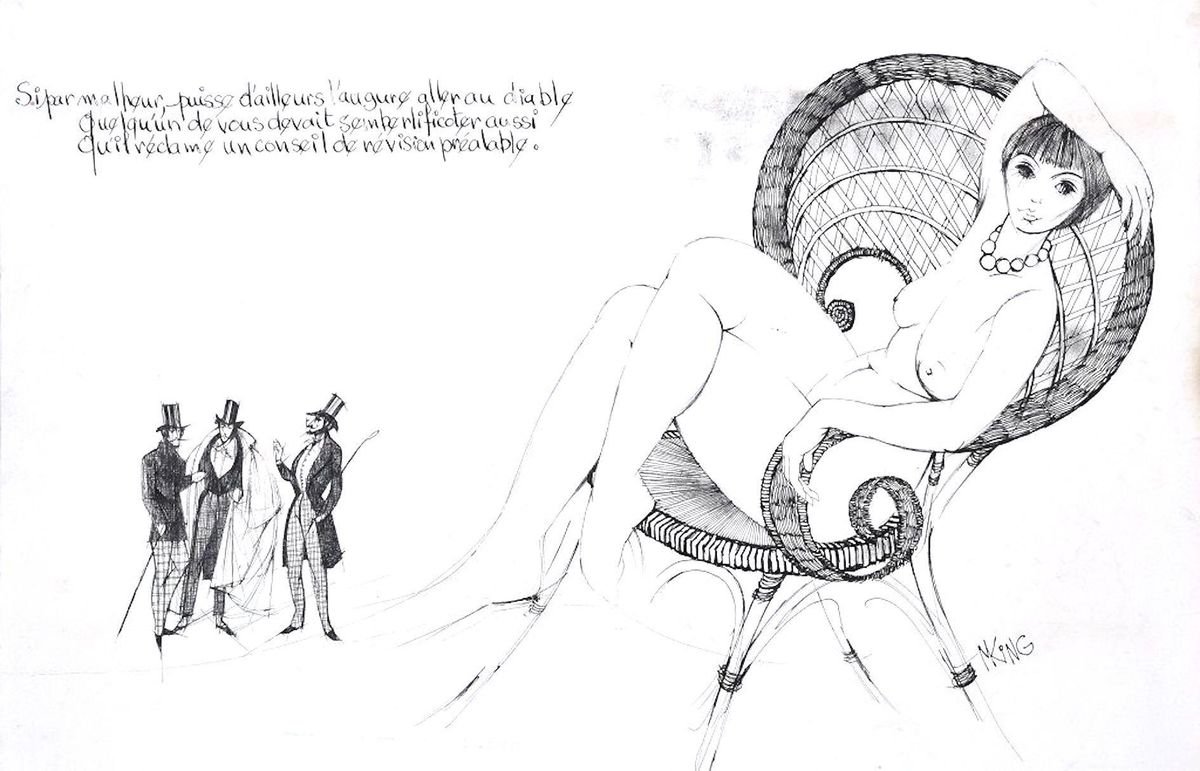 La sommet de l'Homme au Sable - Original China Ink on Paper by M. King Late 1900