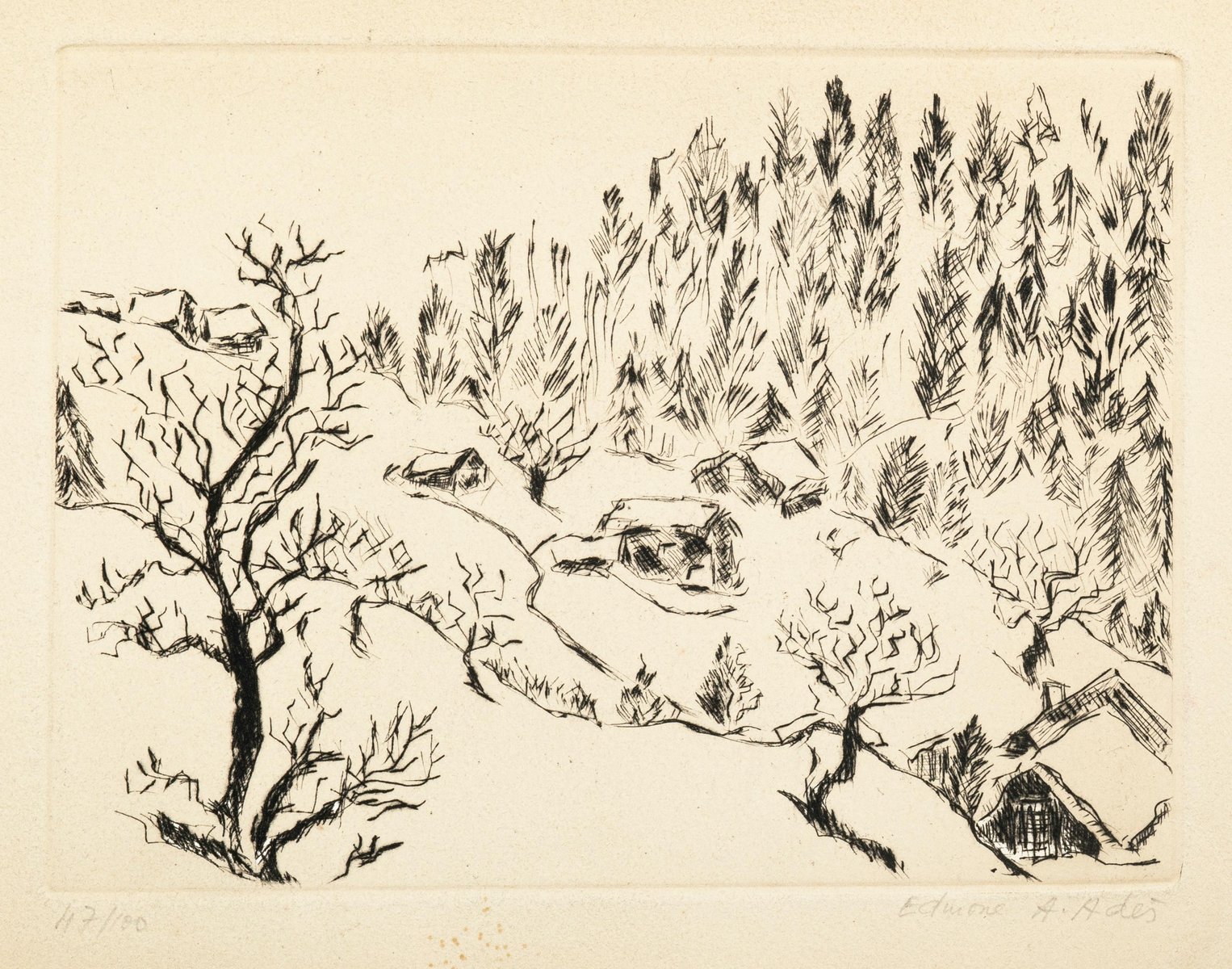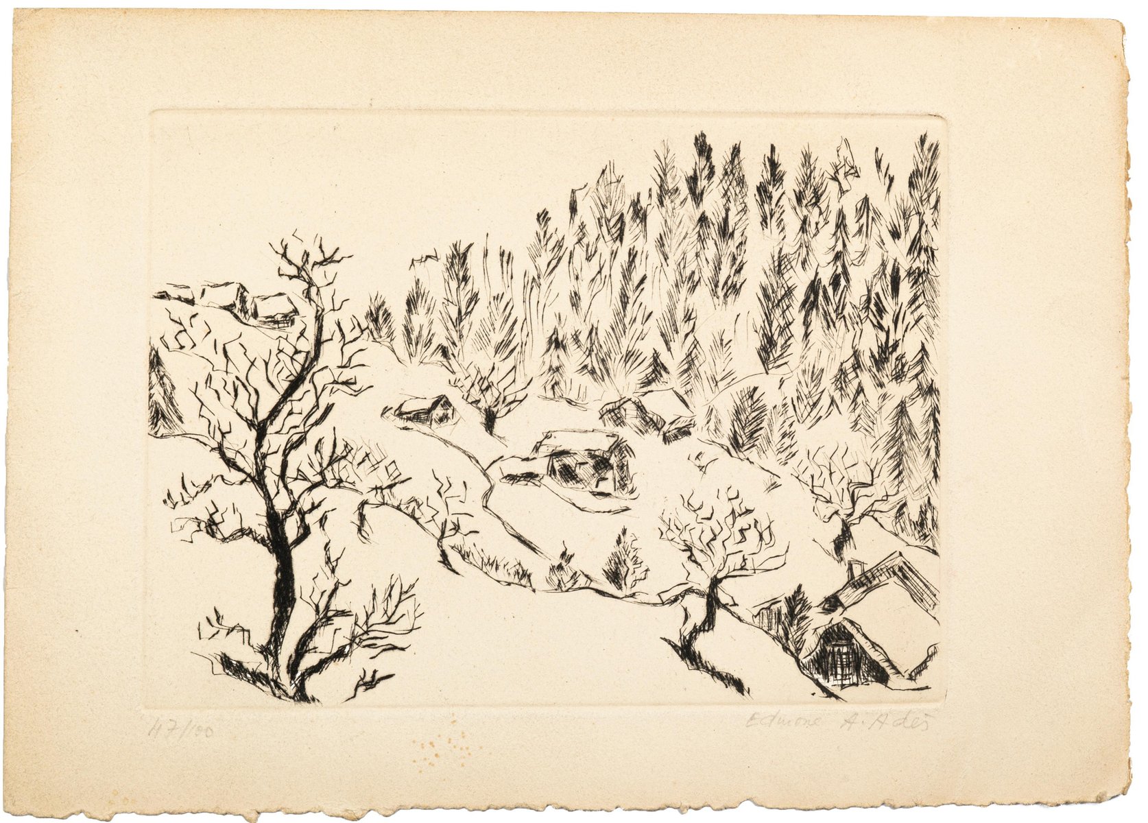 Landscape - Etching and Drypoint by Edmone A. Ades - Mid 20th Century Mid 20th Century