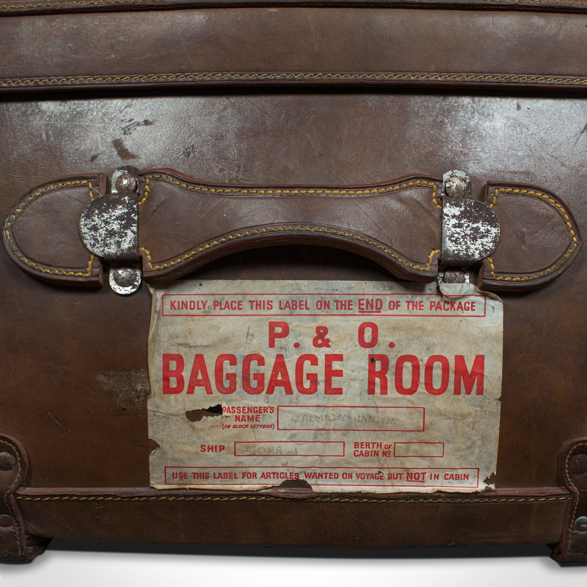 Large Antique English Leather Travel Suitcase