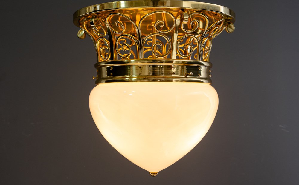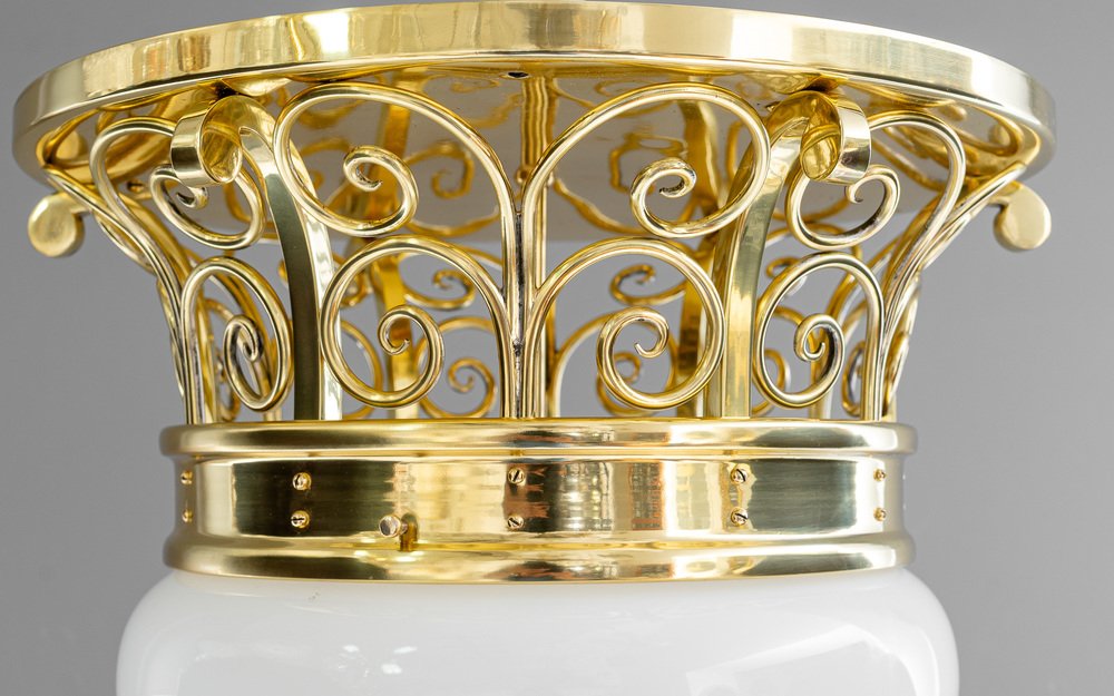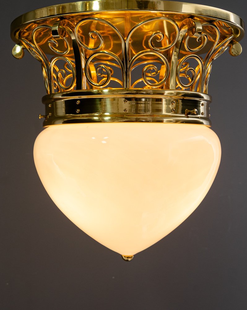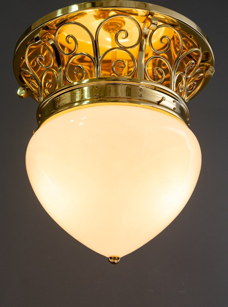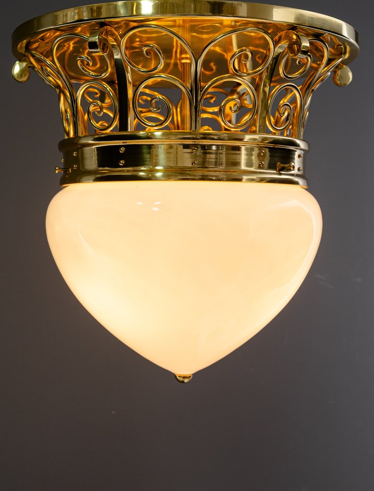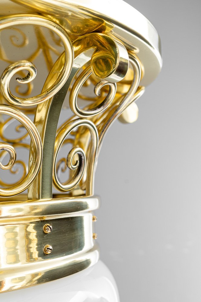 Large Art Deco Ceiling Lamp with Original Opal Glass Shade, Vienna, 1920s
