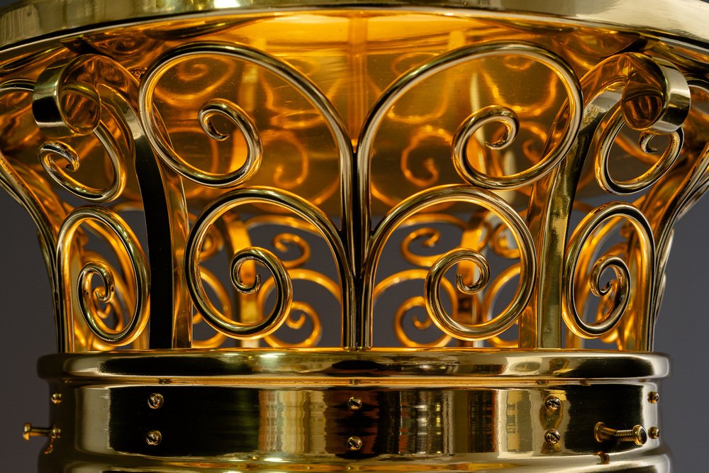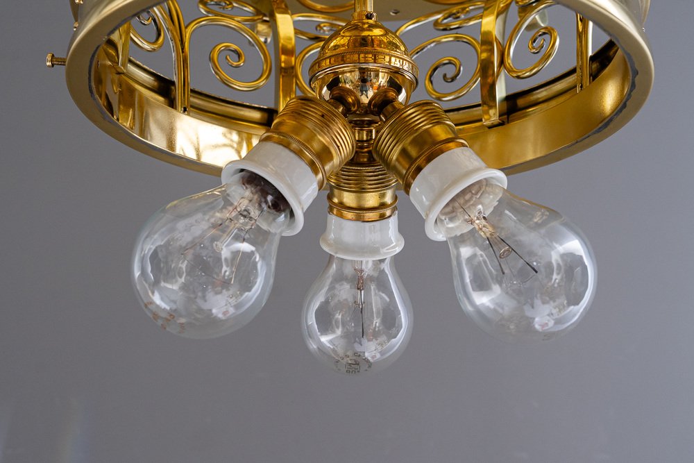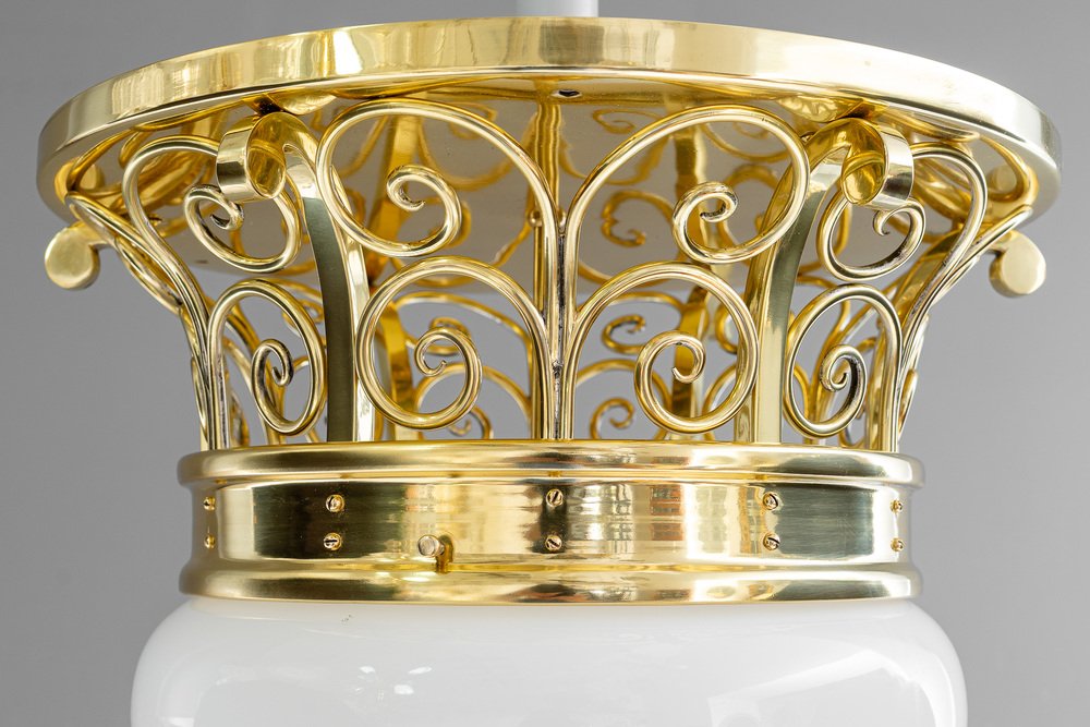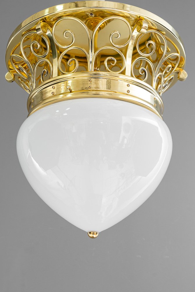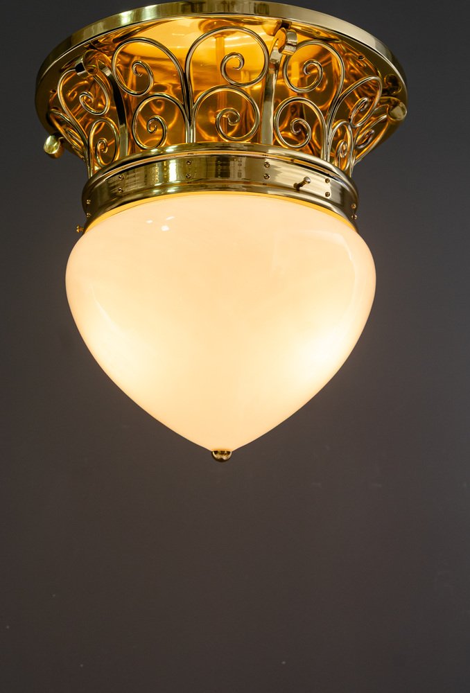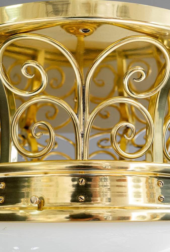 Large Art Deco Ceiling Lamp with Original Opal Glass Shade, Vienna, 1920s