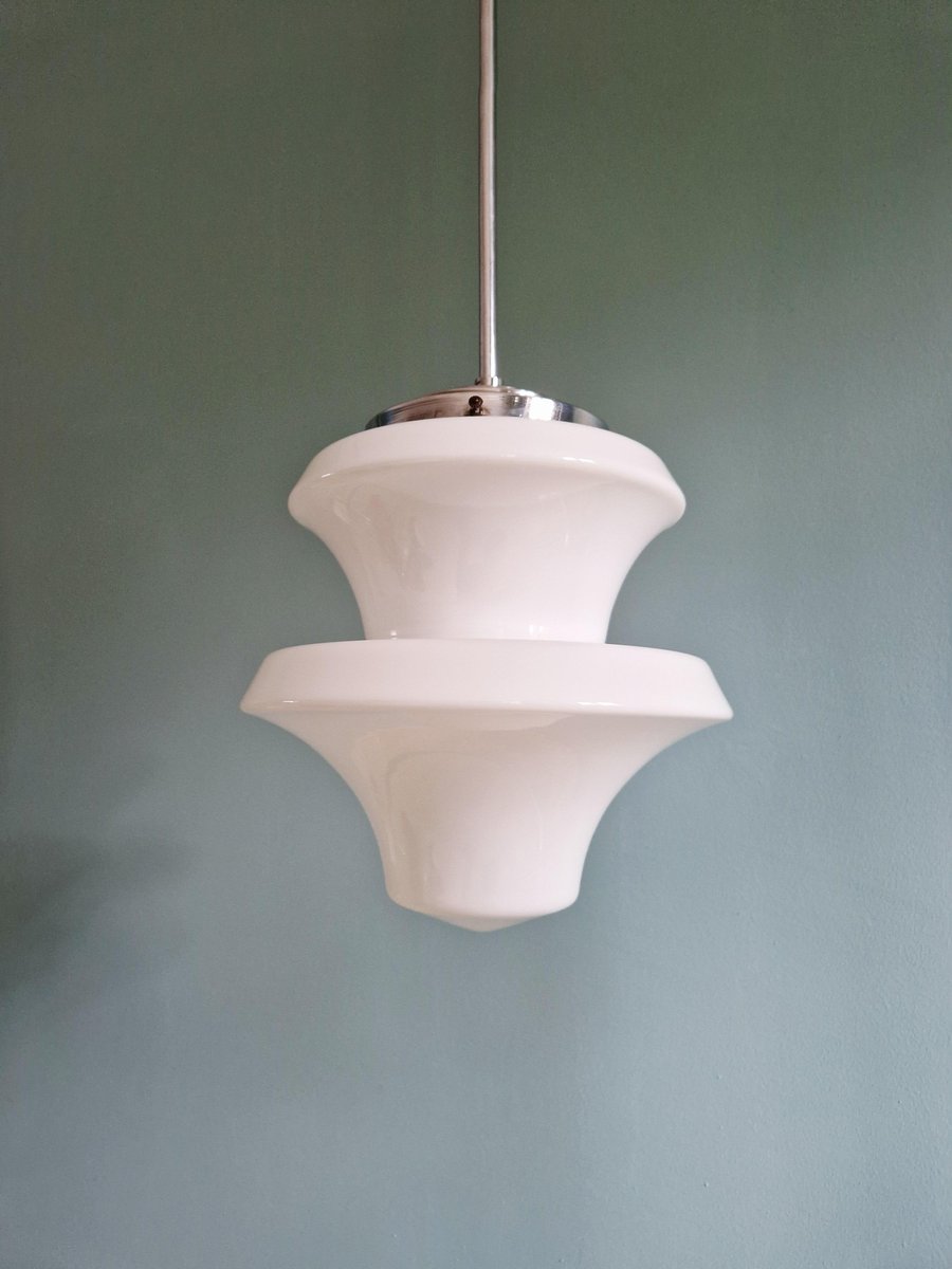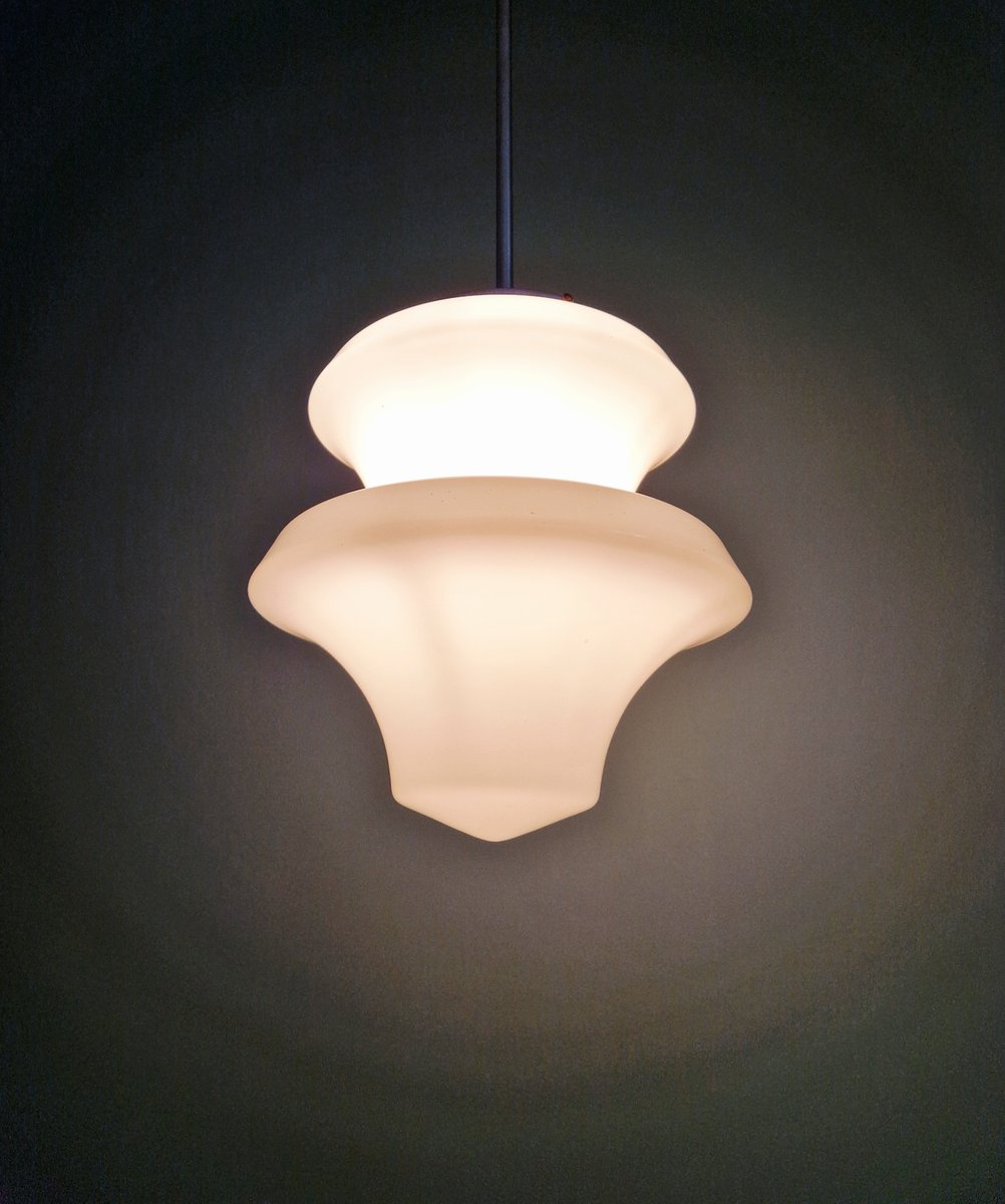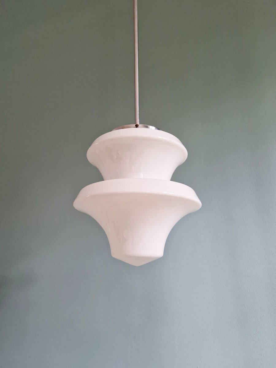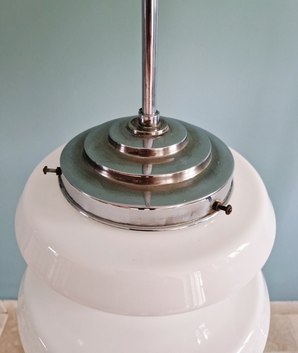 Large Art Deco Pendant Light in White Opaline, 1920s-1930s