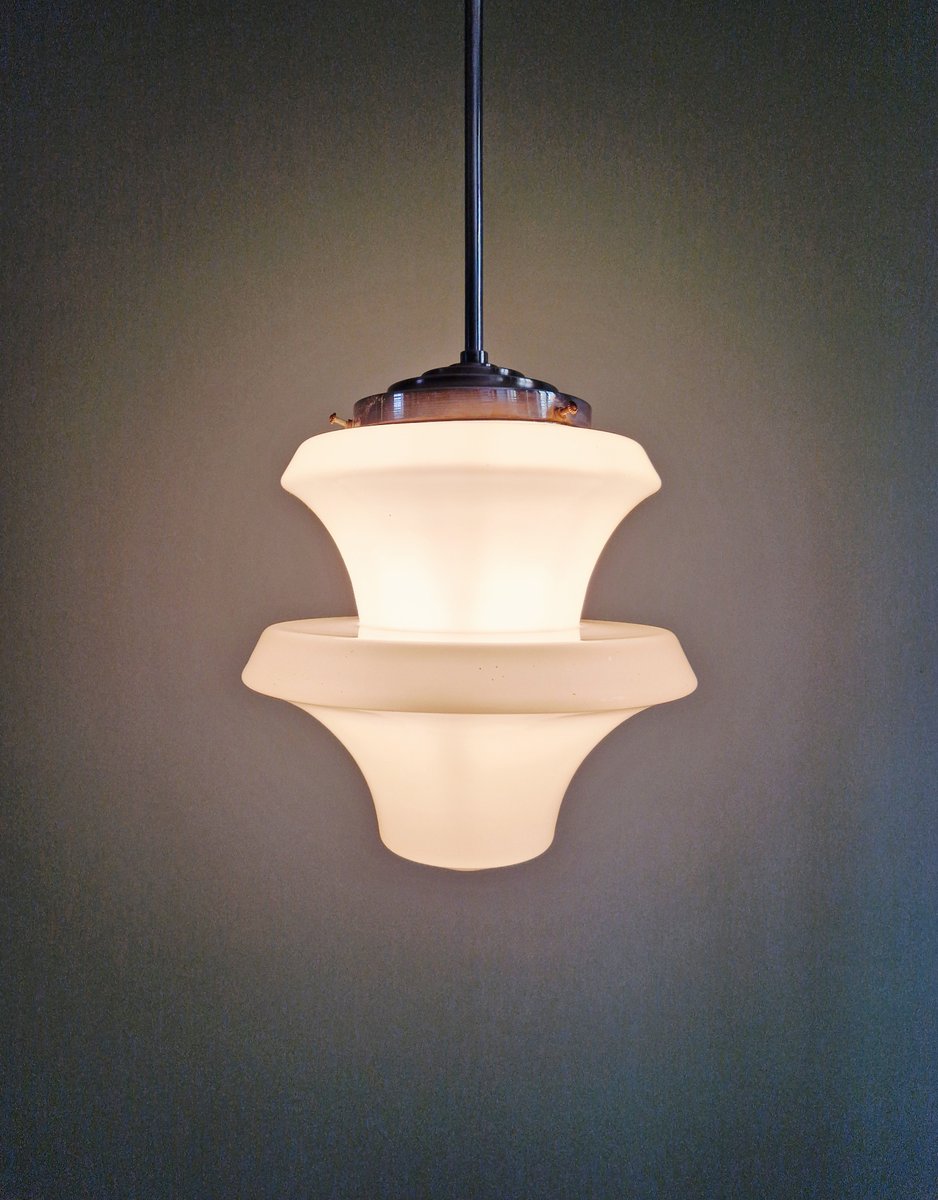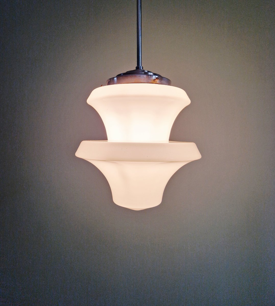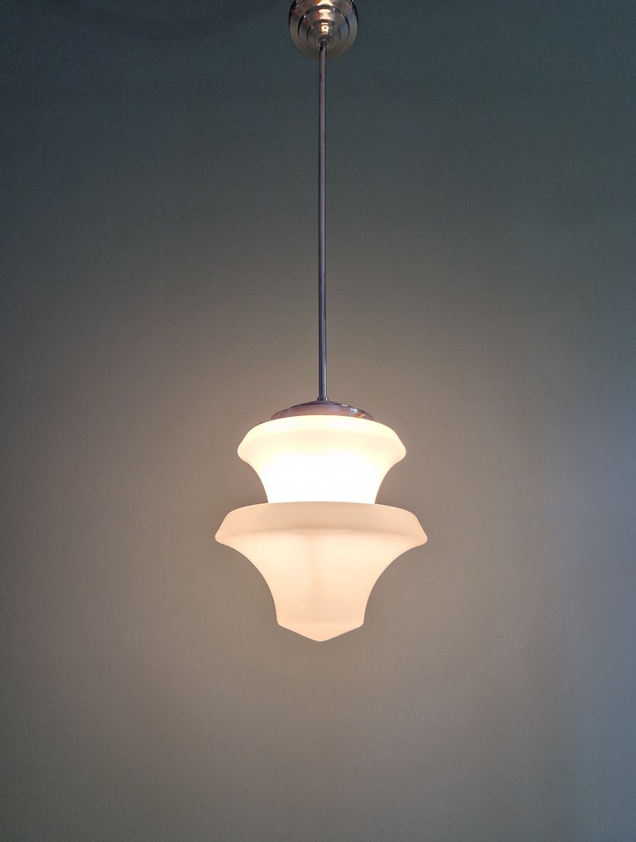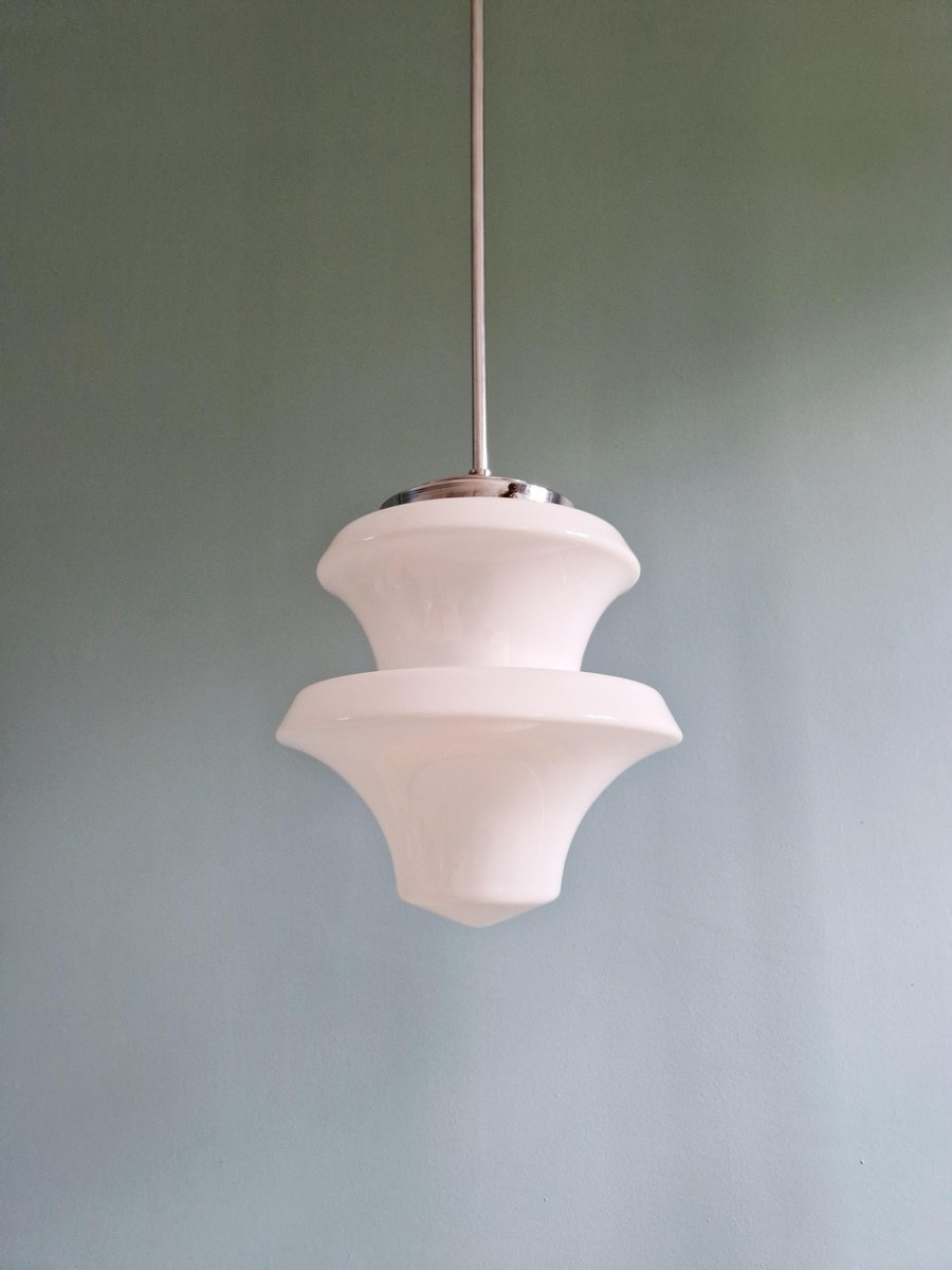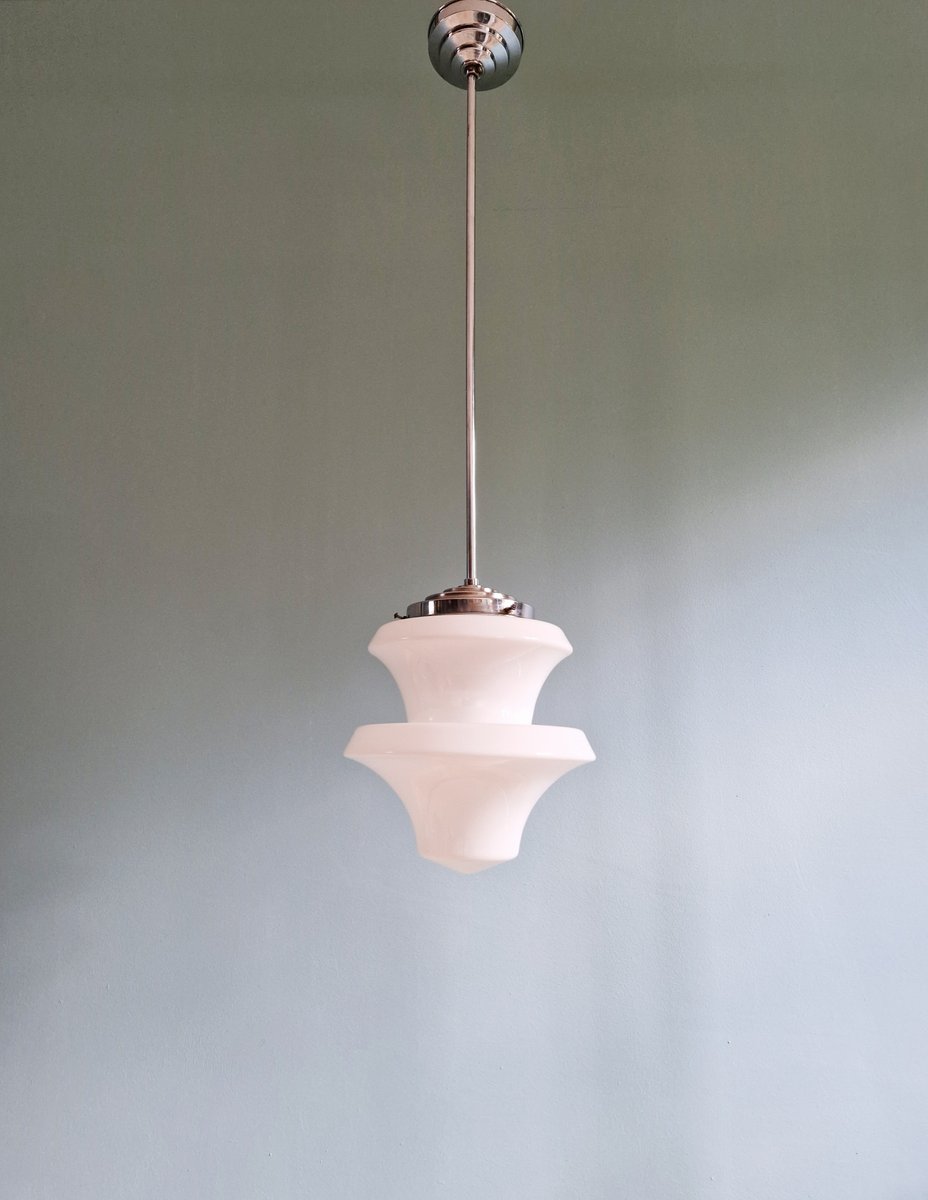 Large Art Deco Pendant Light in White Opaline, 1920s-1930s