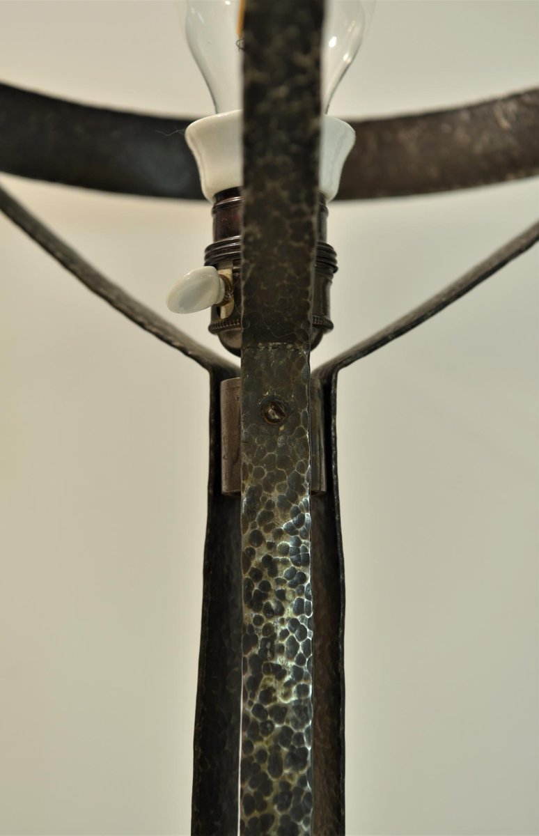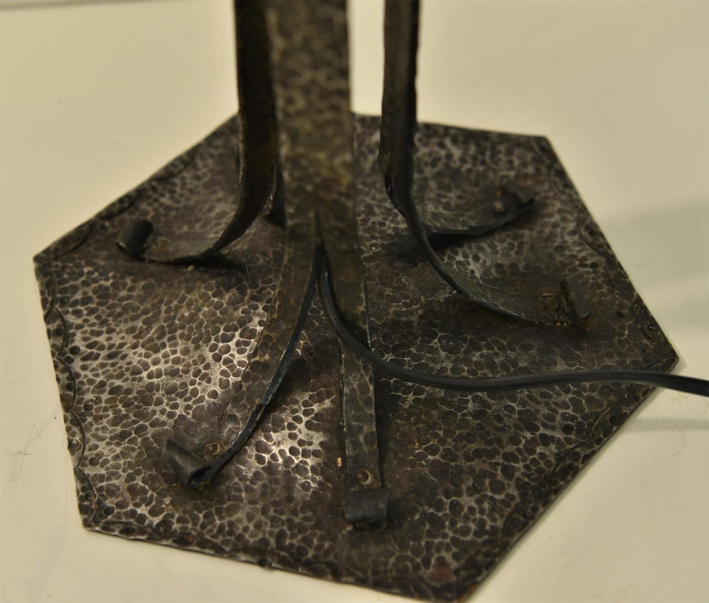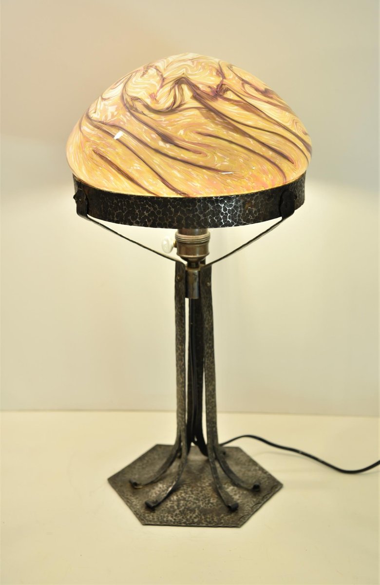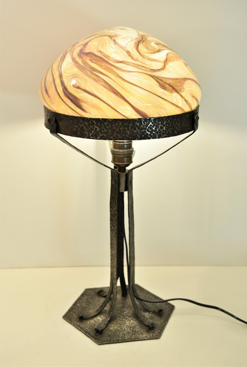 Large Art Nouveau Wrought Iron, Glass Table Lamp from Jugendstil, Sweden, 1925