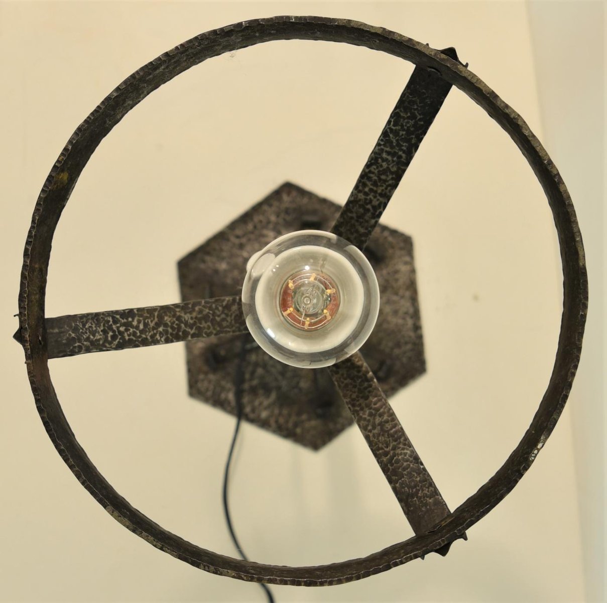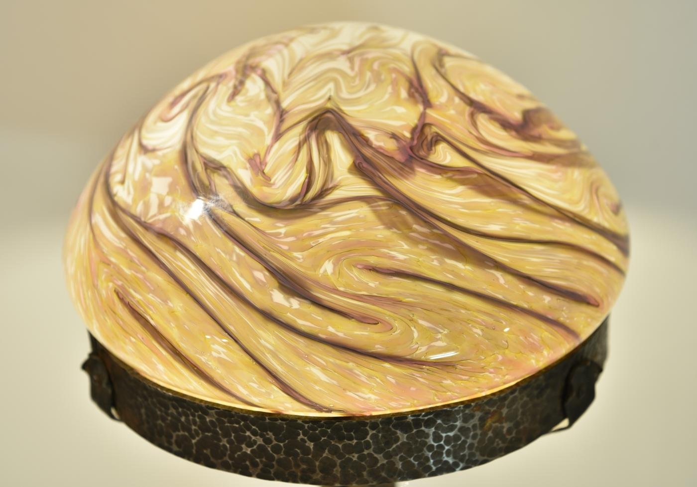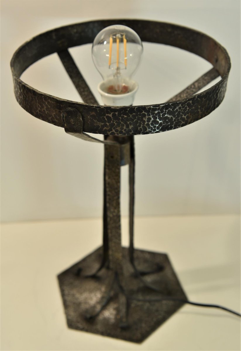 Large Art Nouveau Wrought Iron, Glass Table Lamp from Jugendstil, Sweden, 1925