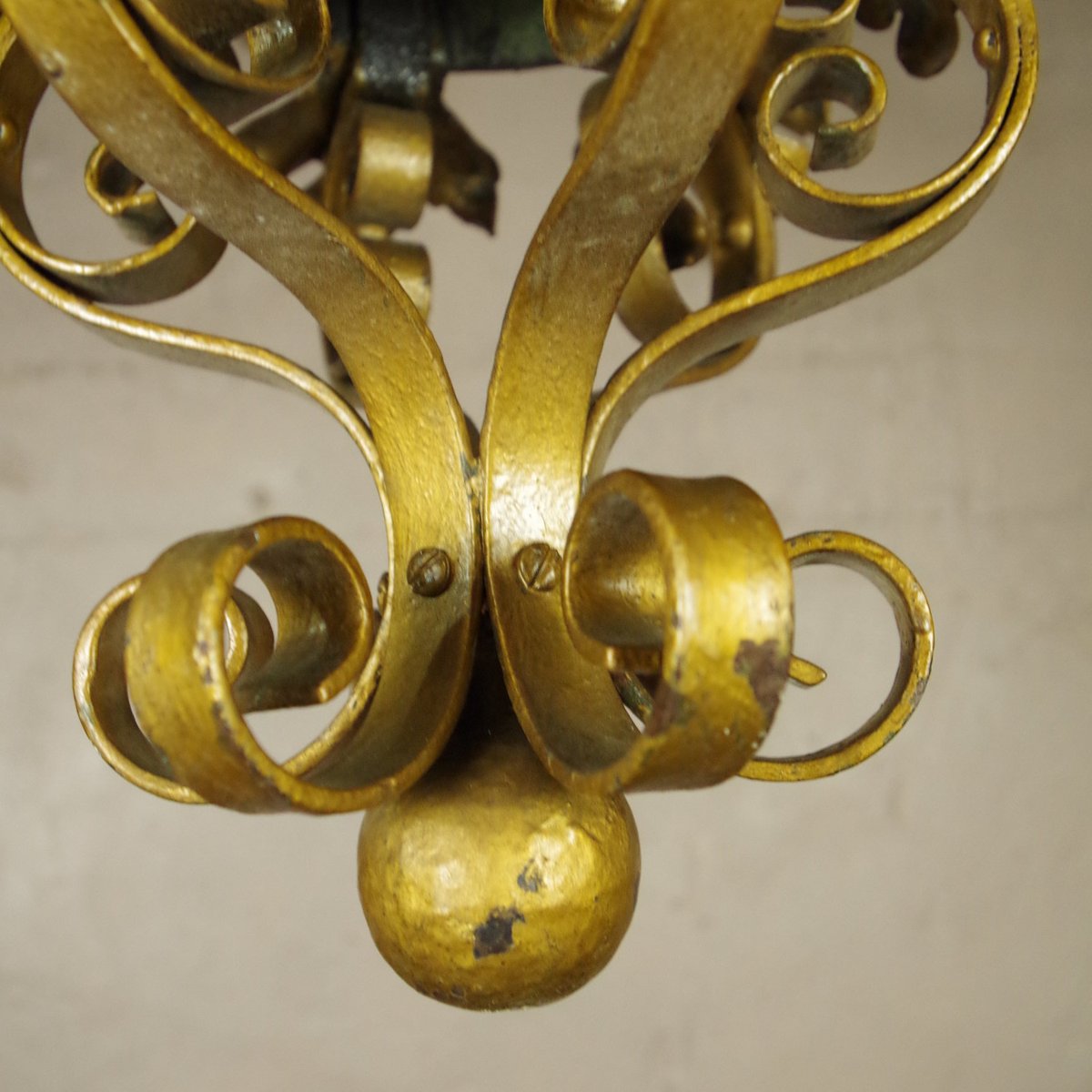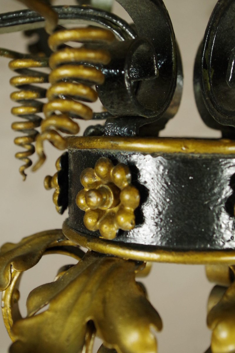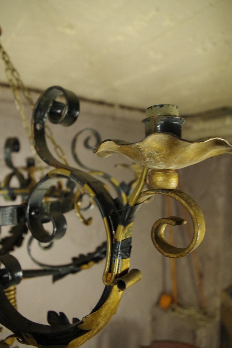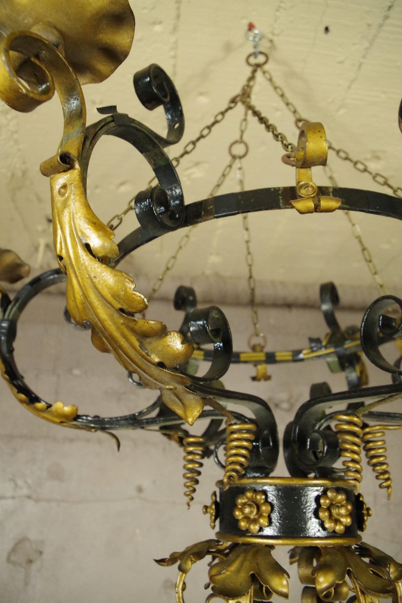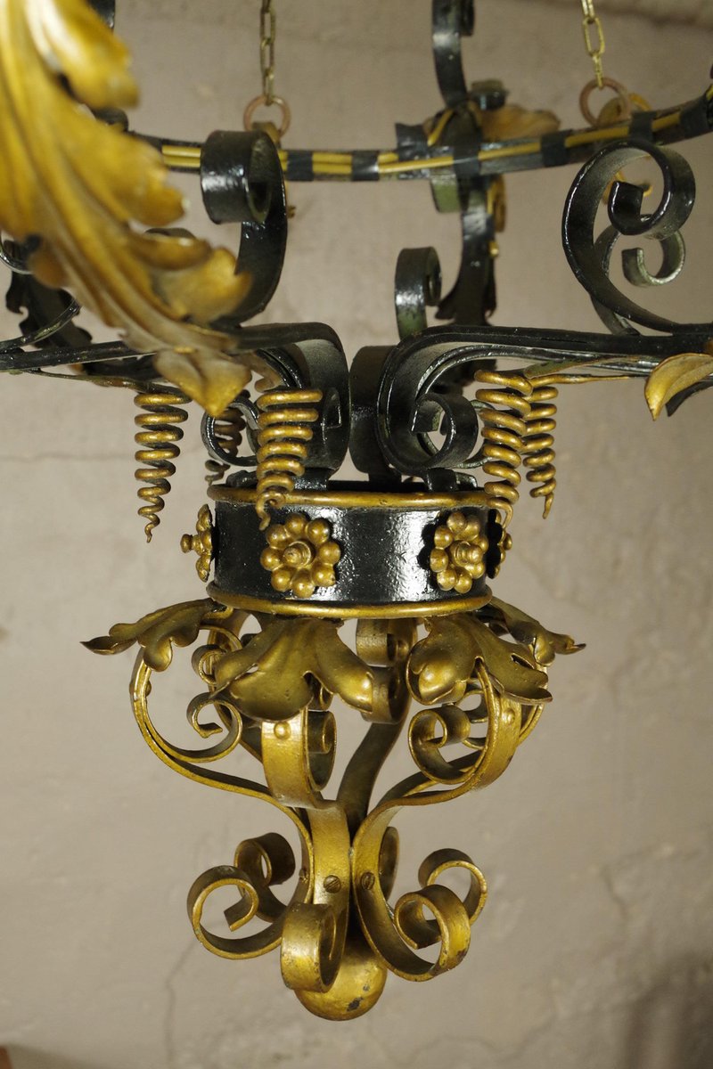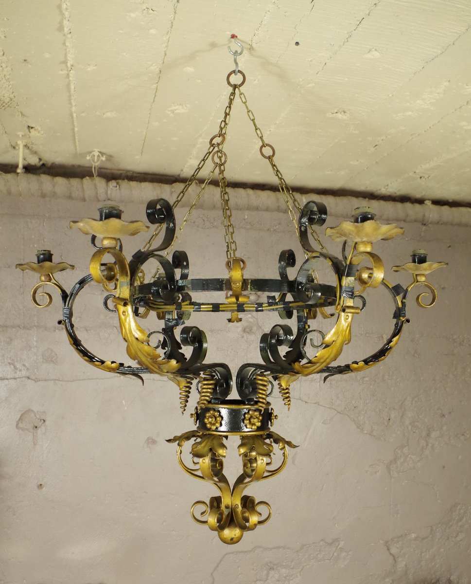 Large Chandelier in Wrought Iron and Riveted Suspension Light Fixture
