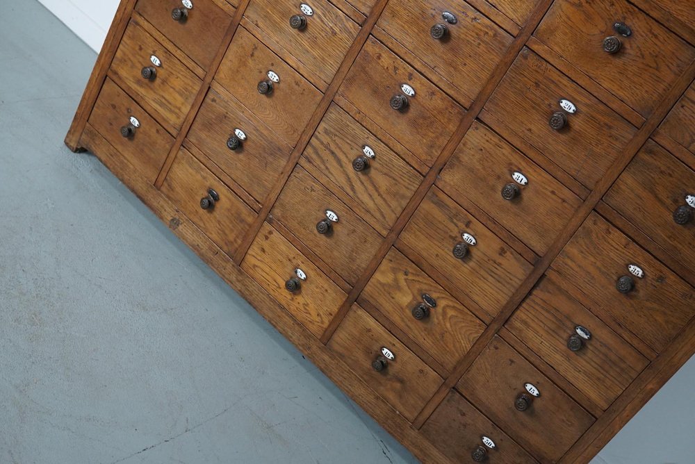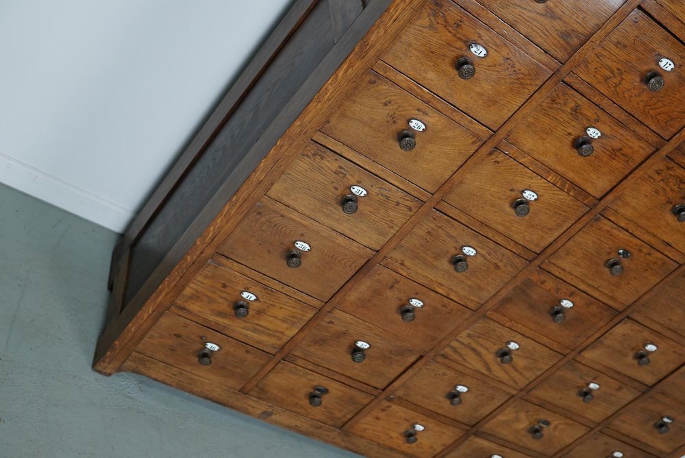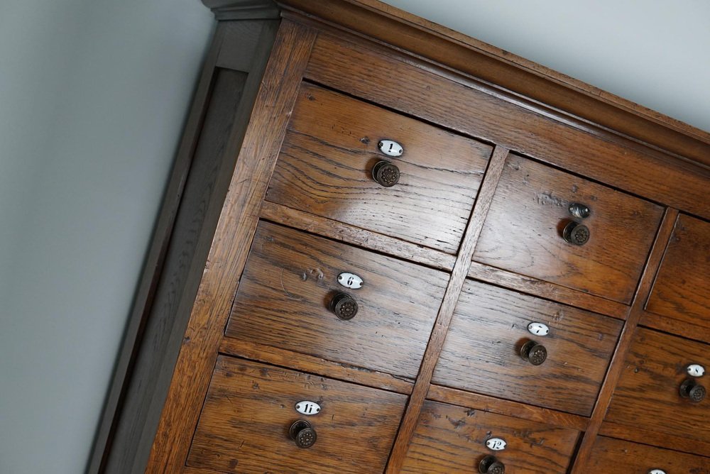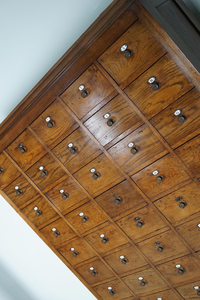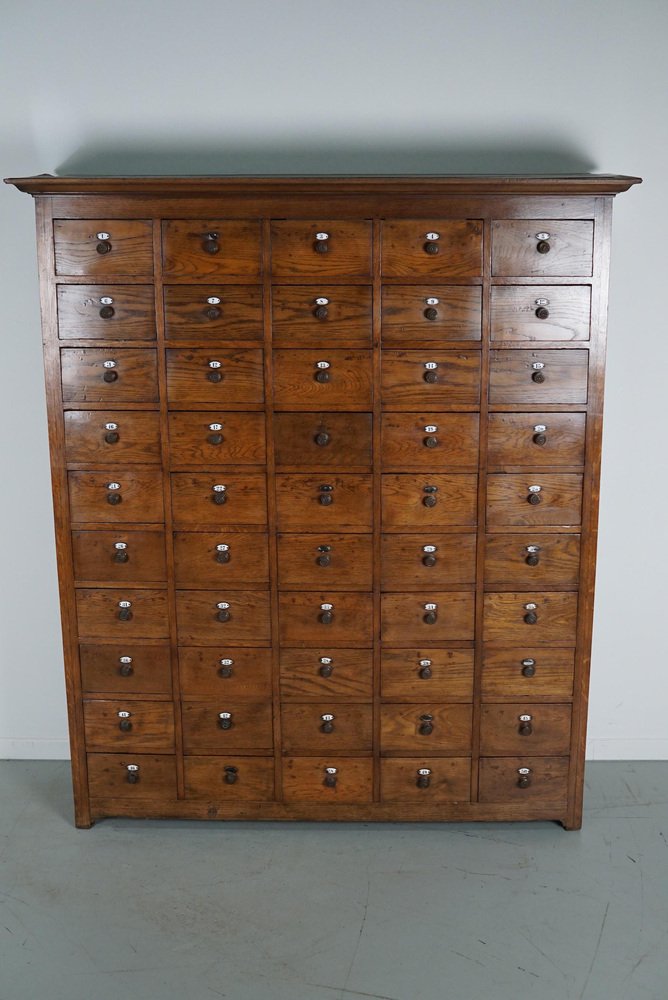 Large Dutch Oak Apothecary Cabinet with Enamel Shields, 1900s