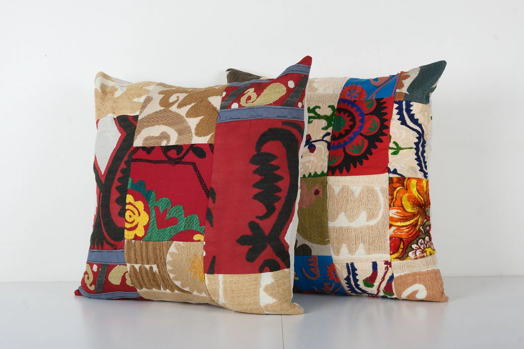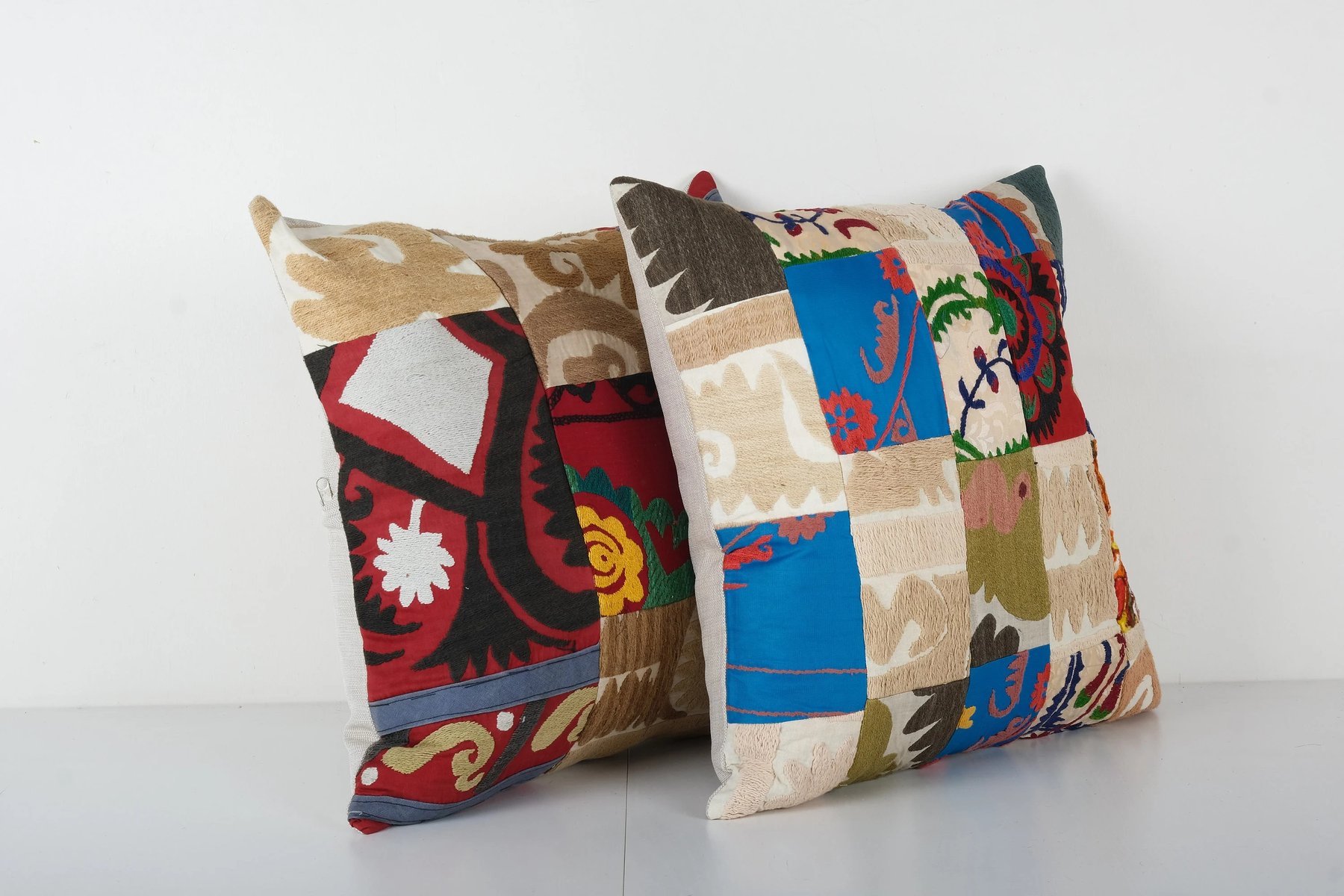 Large Embroidered Suzani Cushion Covers, Set of 2