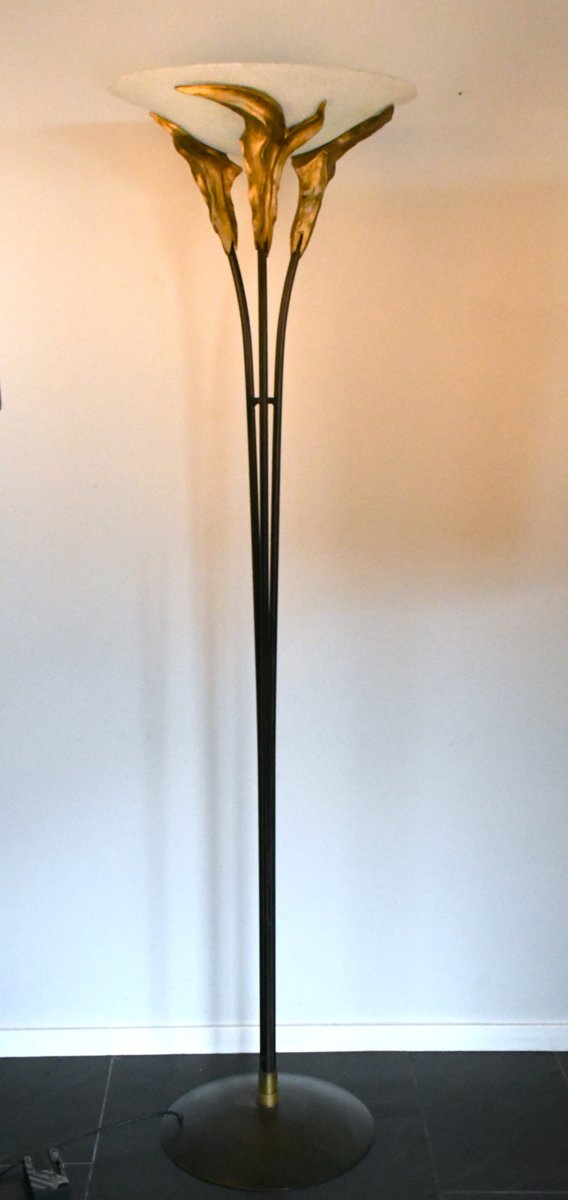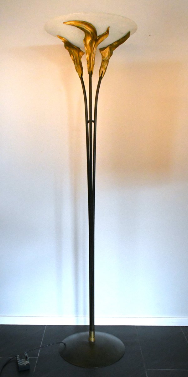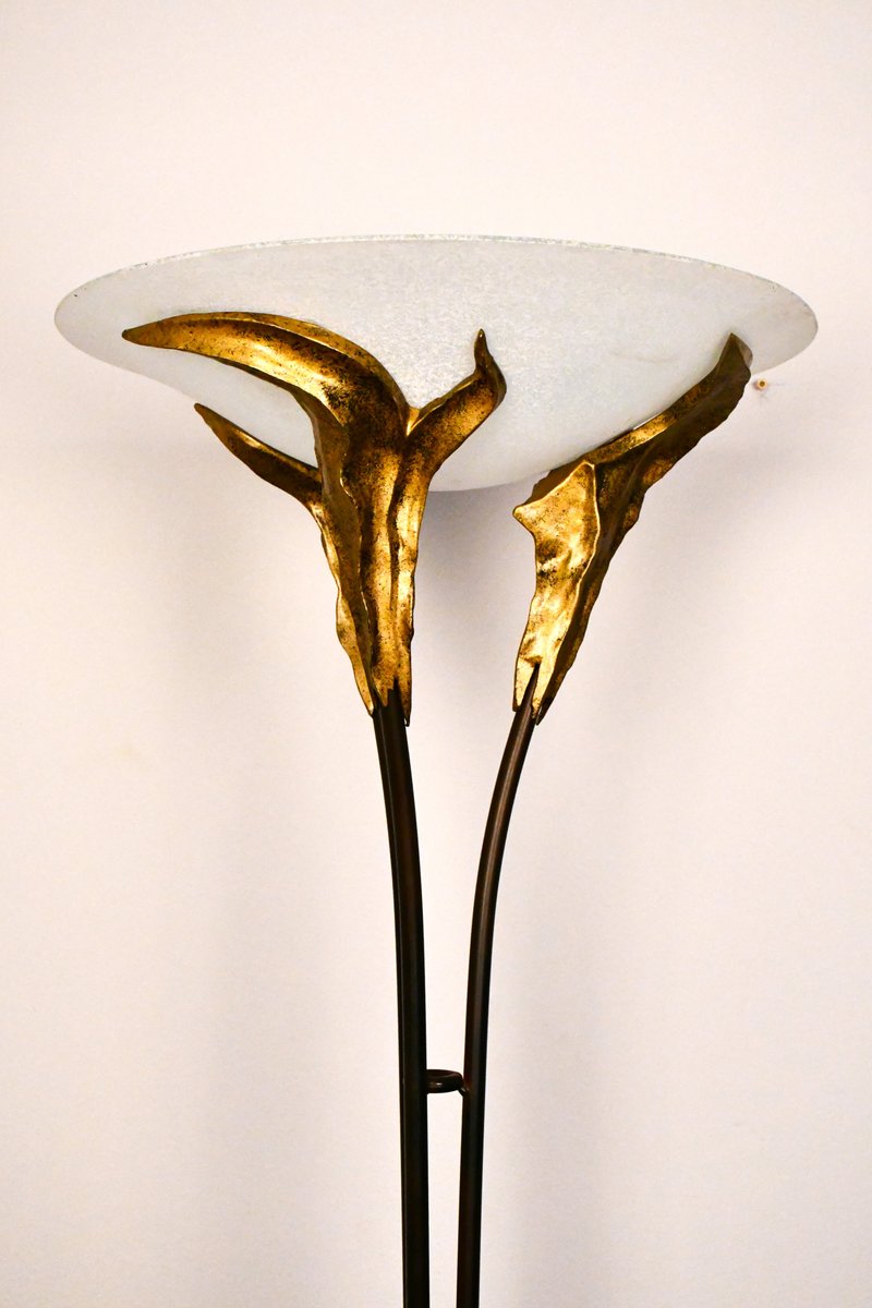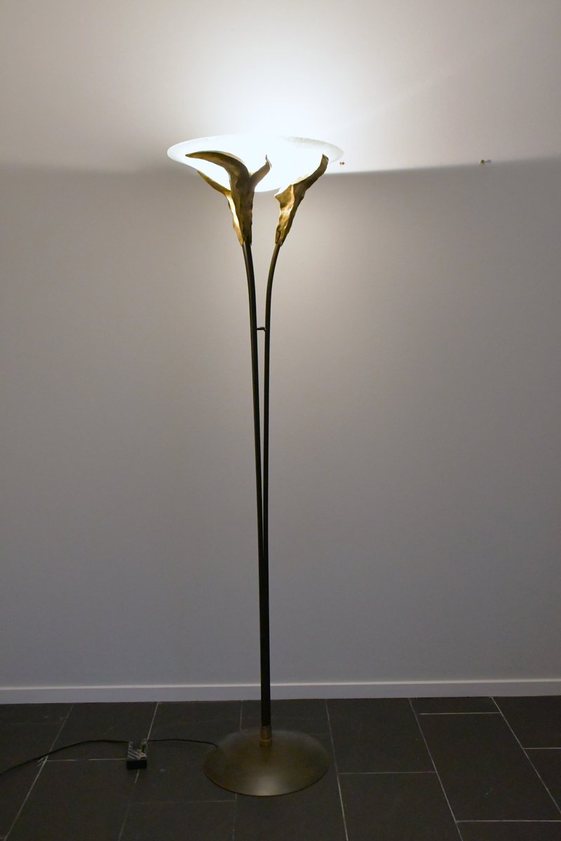 Large French Art Deco Style Frosted Glass Floor Lamp by Montauban, 1980s
