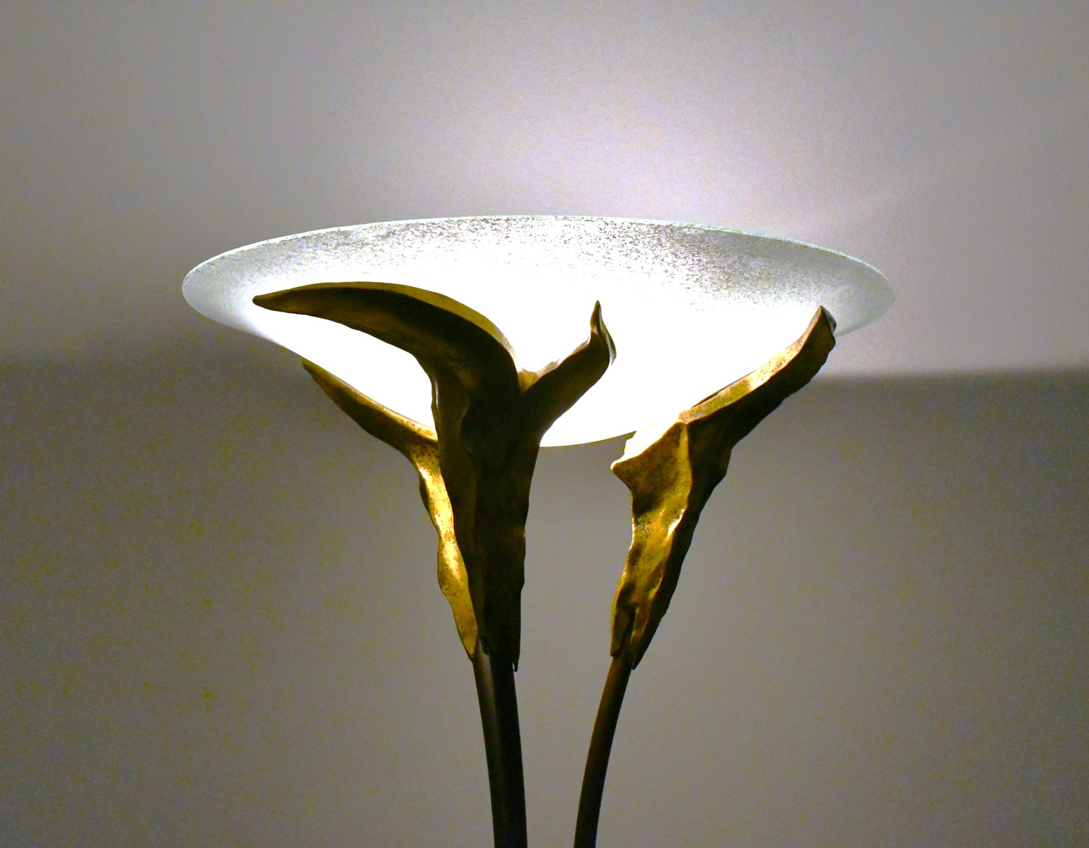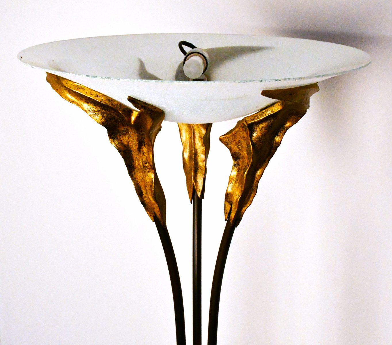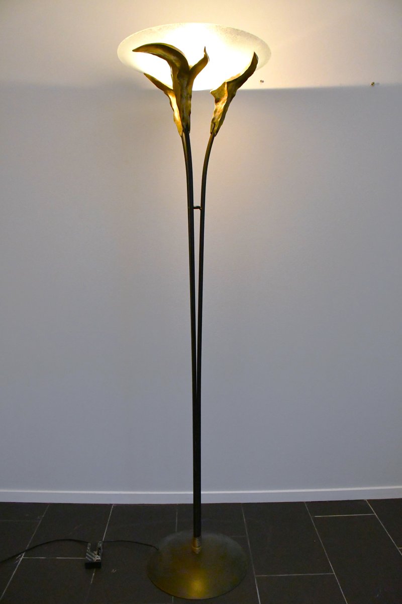 Large French Art Deco Style Frosted Glass Floor Lamp by Montauban, 1980s