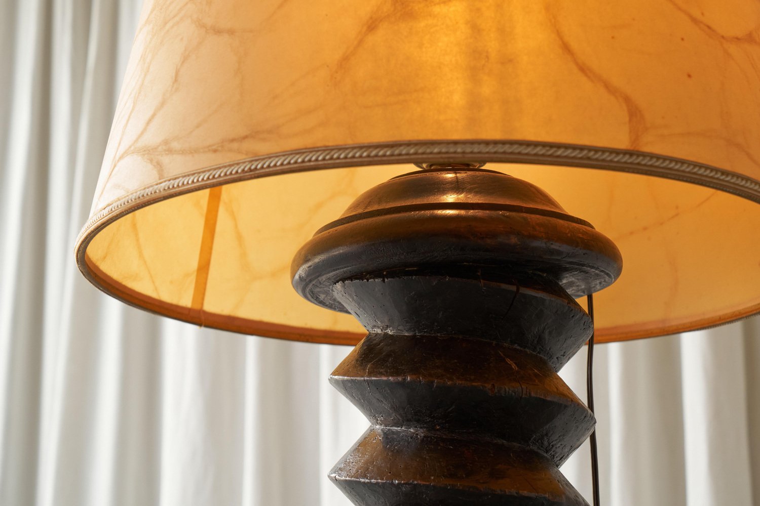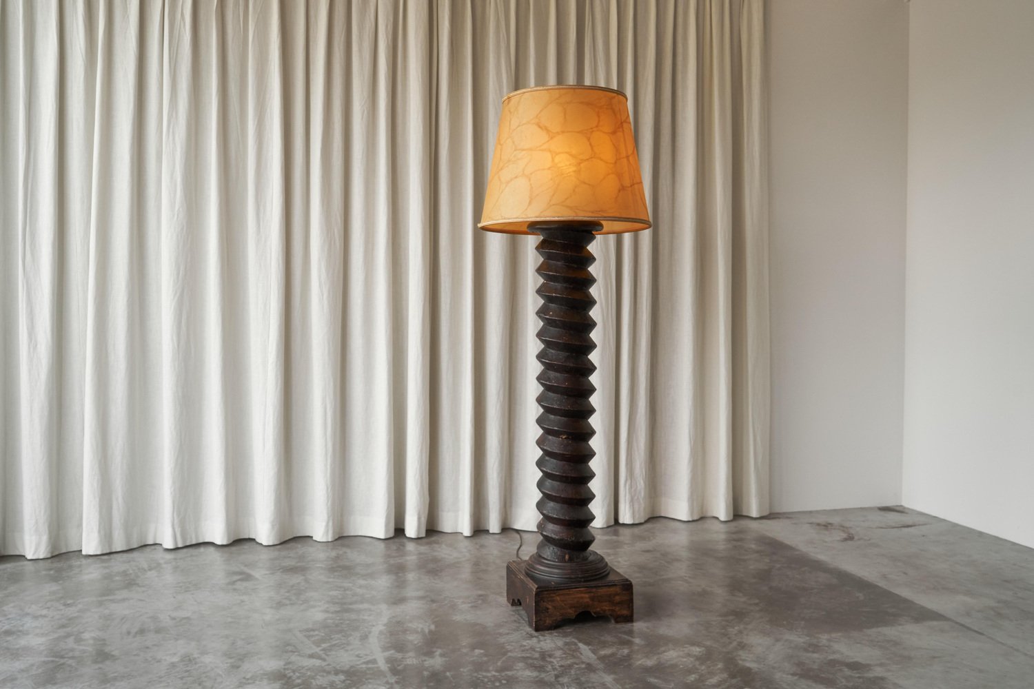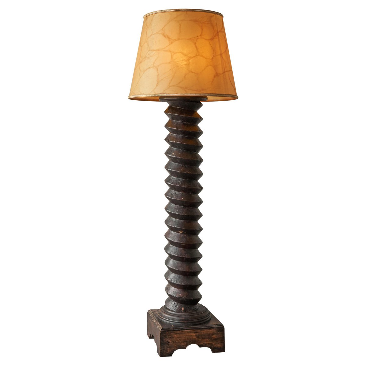 Large French Provincial Floor Lamp in Carved Wood and Parchment Shade, 1920s
