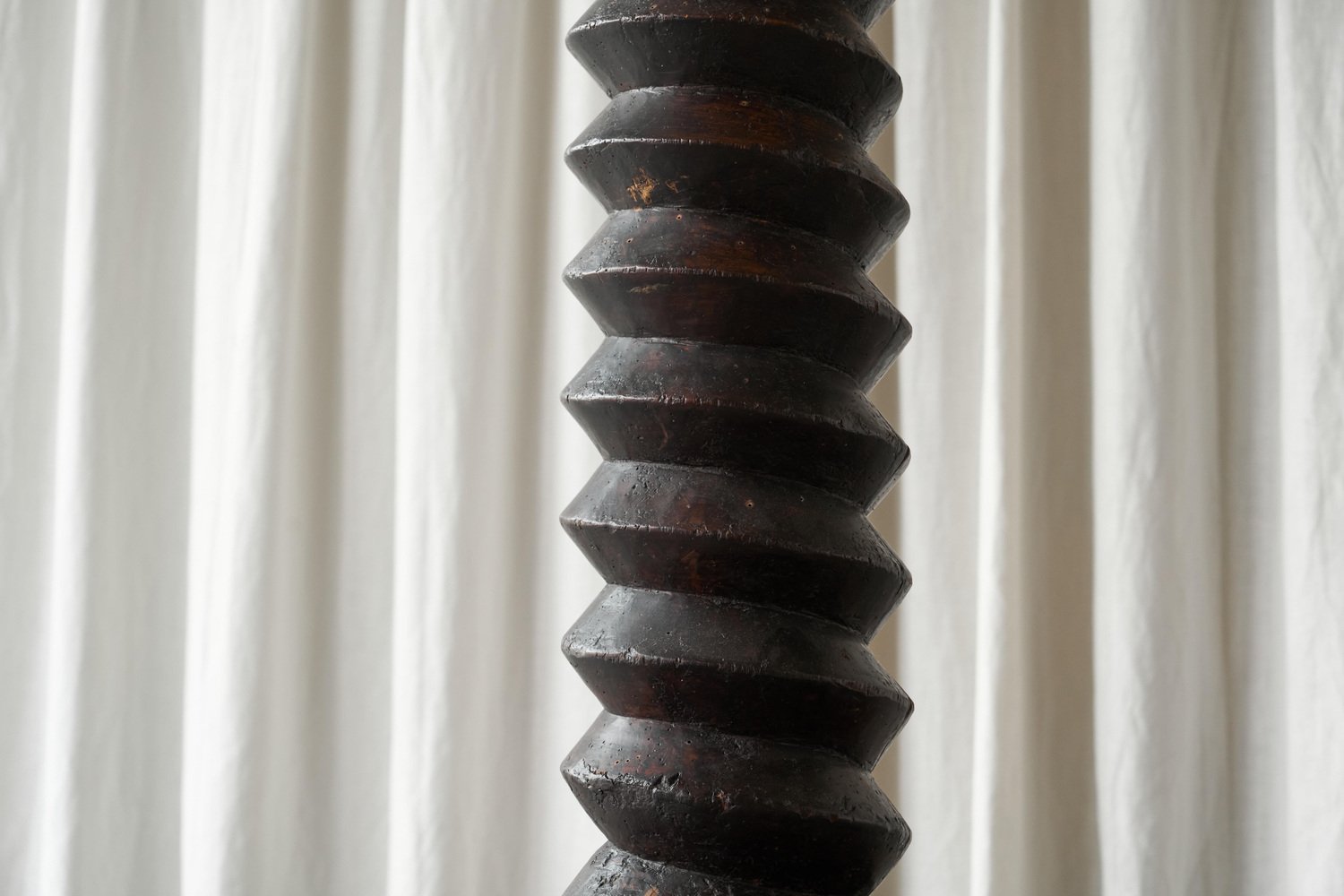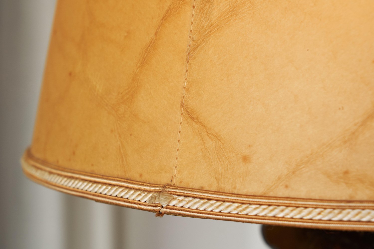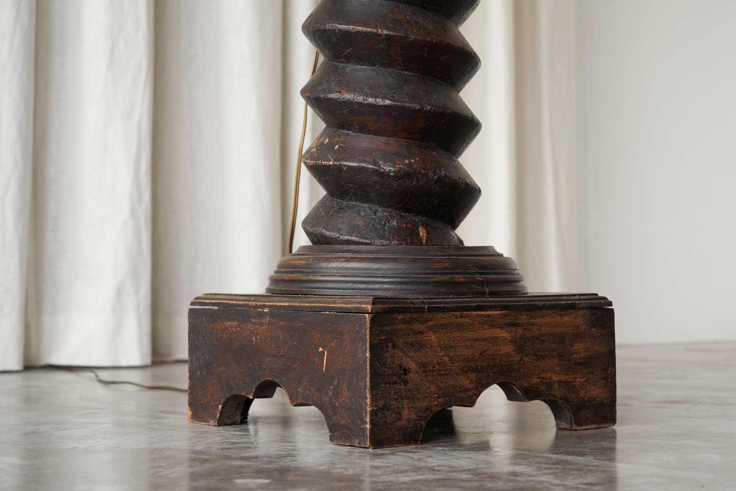 Large French Provincial Floor Lamp in Carved Wood and Parchment Shade, 1920s