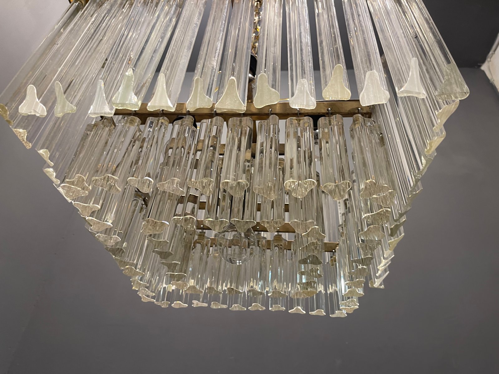 Large Italian Murano Glass Prism Triedri Chandelier Lamp