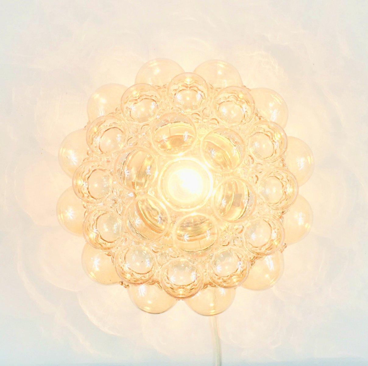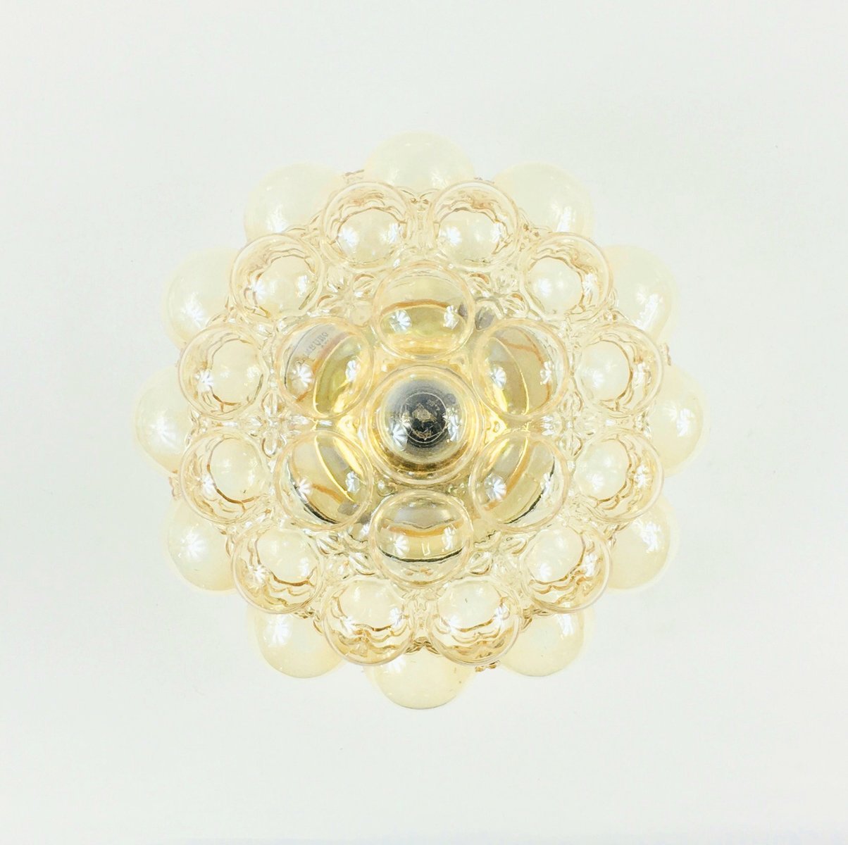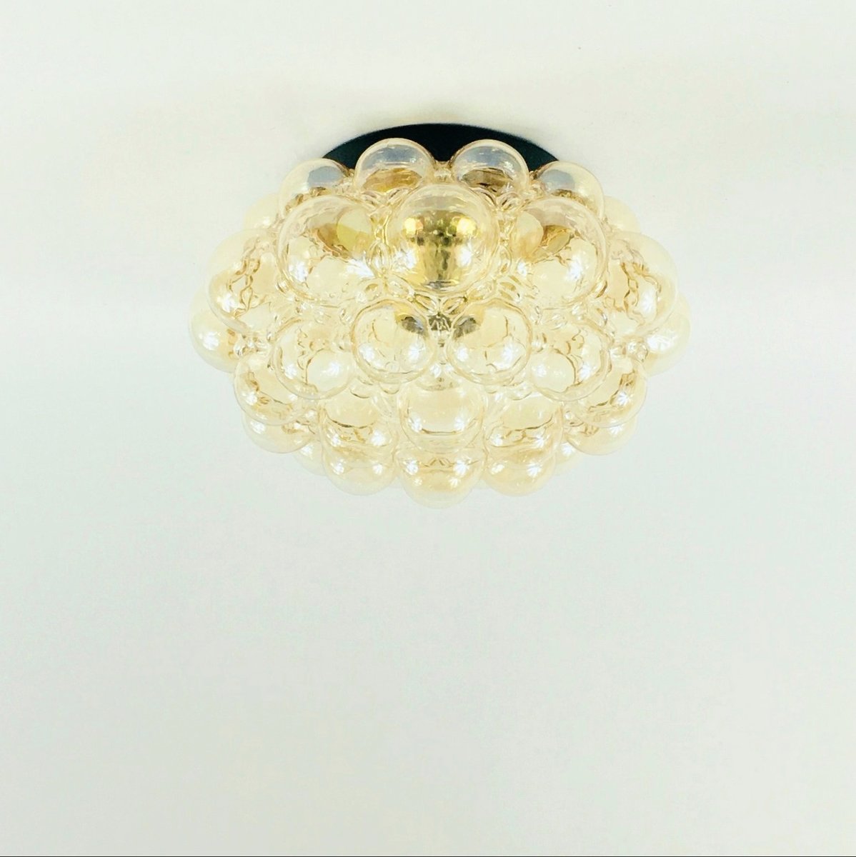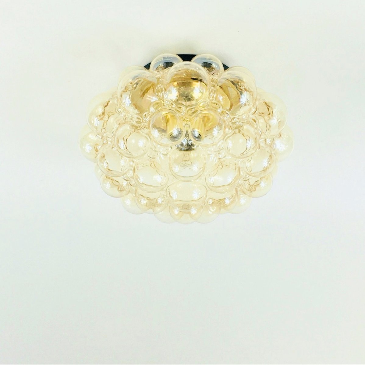 Large Mid-Century Modern Amber Bubble Glass Flush Mount by Helena Tynell for Limburg, Germany, 1970s