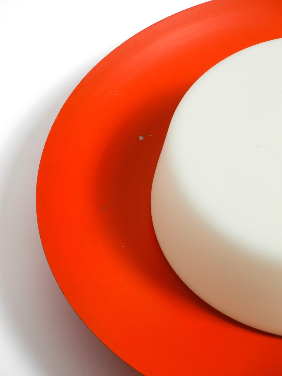 Large Mid-Century Wall or Ceiling Lamp in Glass with Red Metal Reflector from Kaiser Leuchten, 1950s