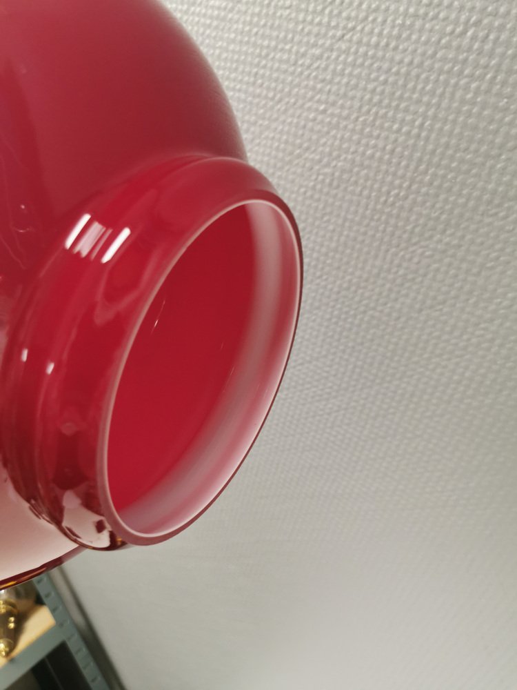 Desk Lamp in Brass and Red Lacquered Metal by Erik Wärnå, Sweden, 1950s