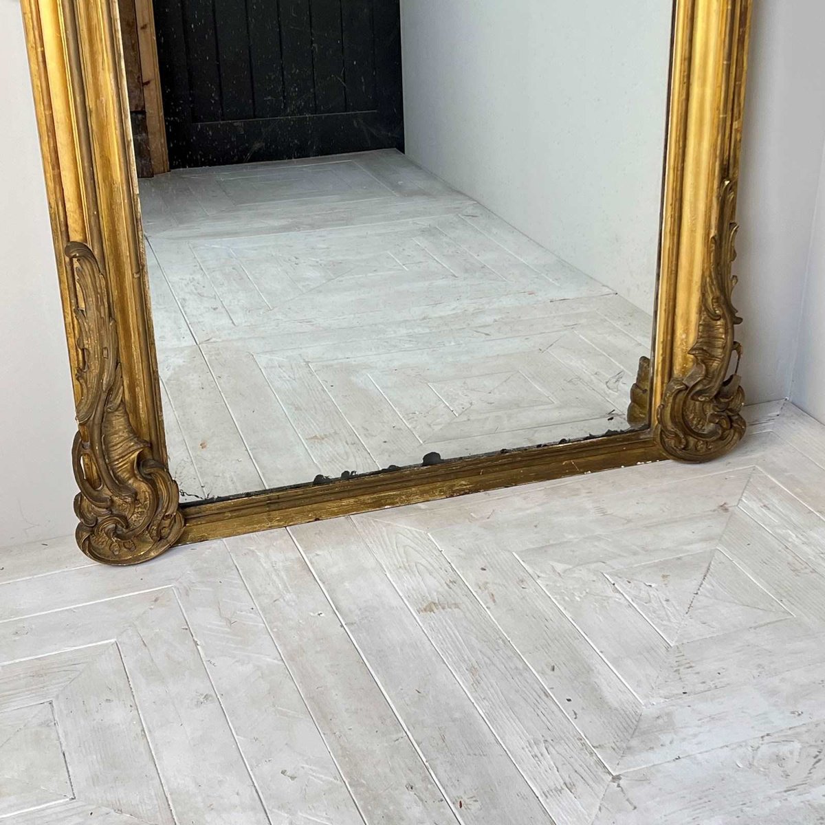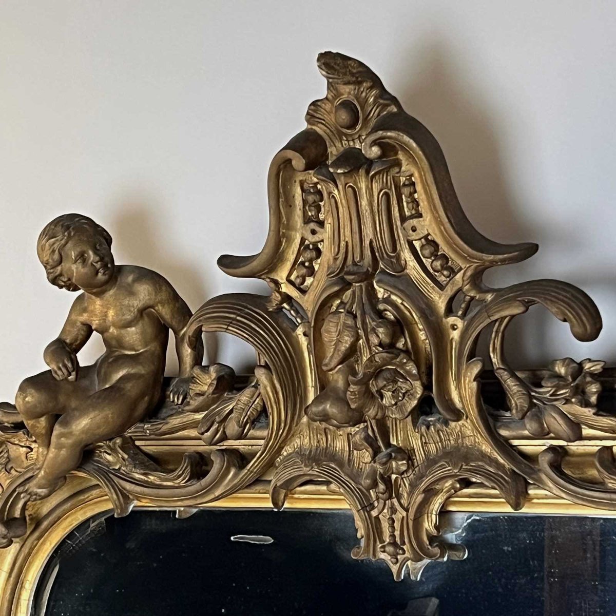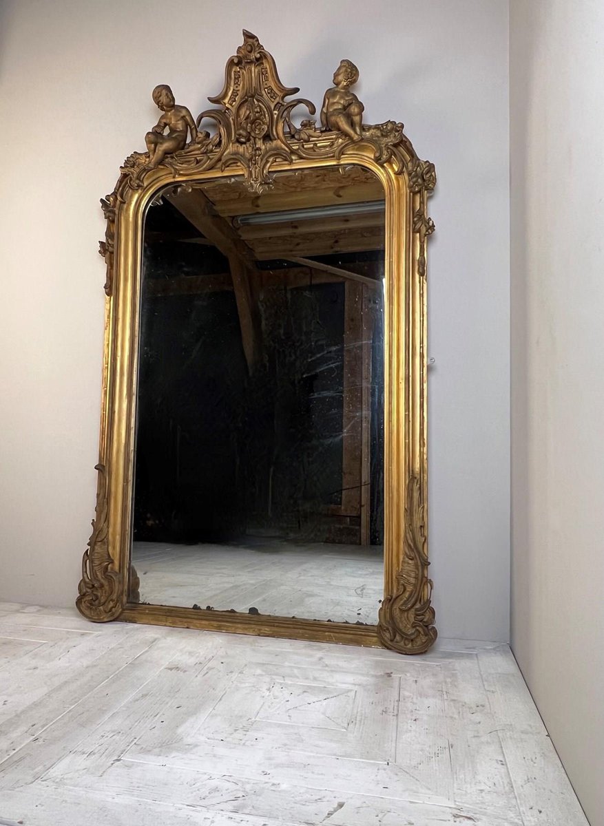 Large Six Foot Giltwood and Gesso Putti Mirror, 19th Century