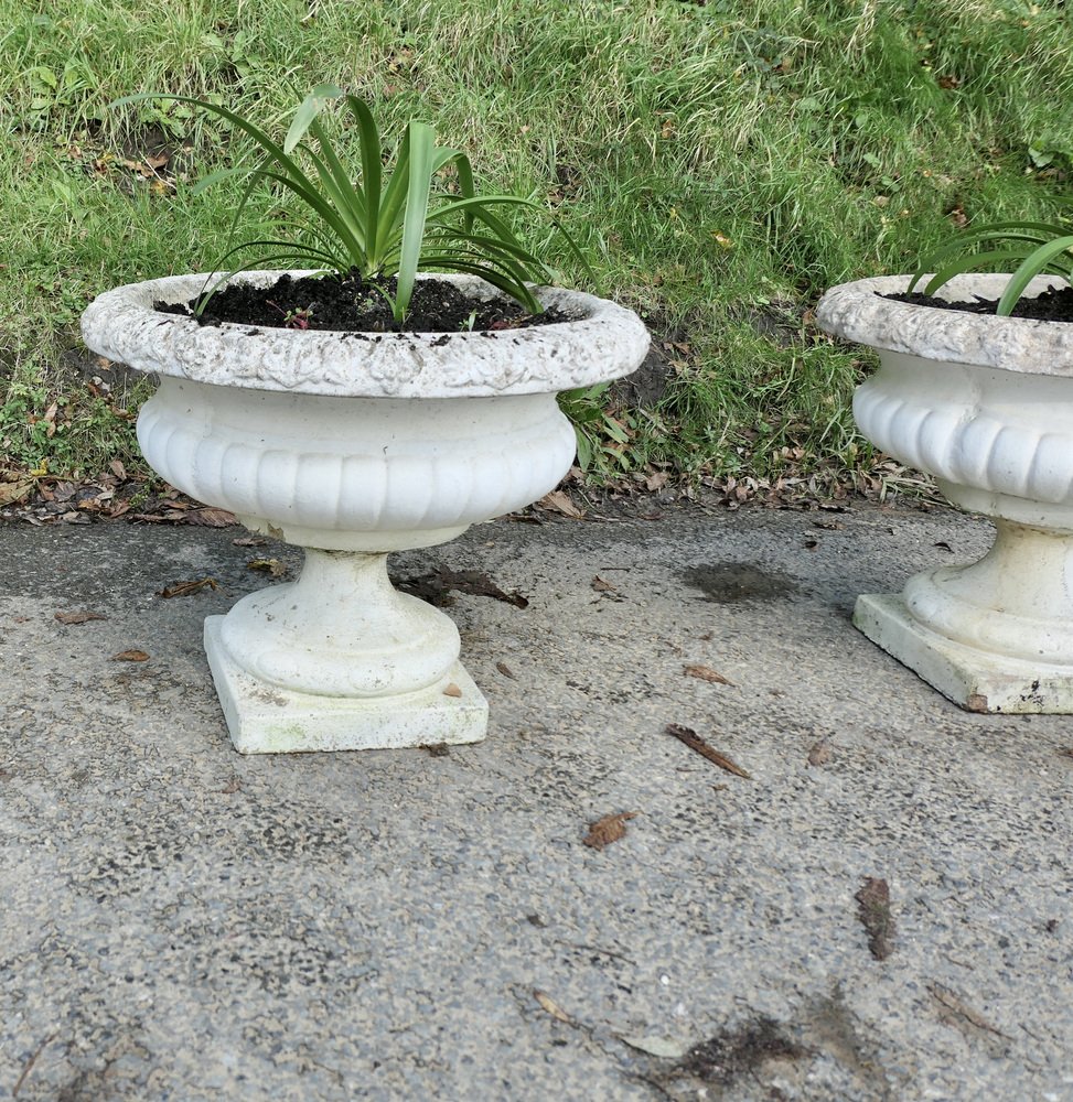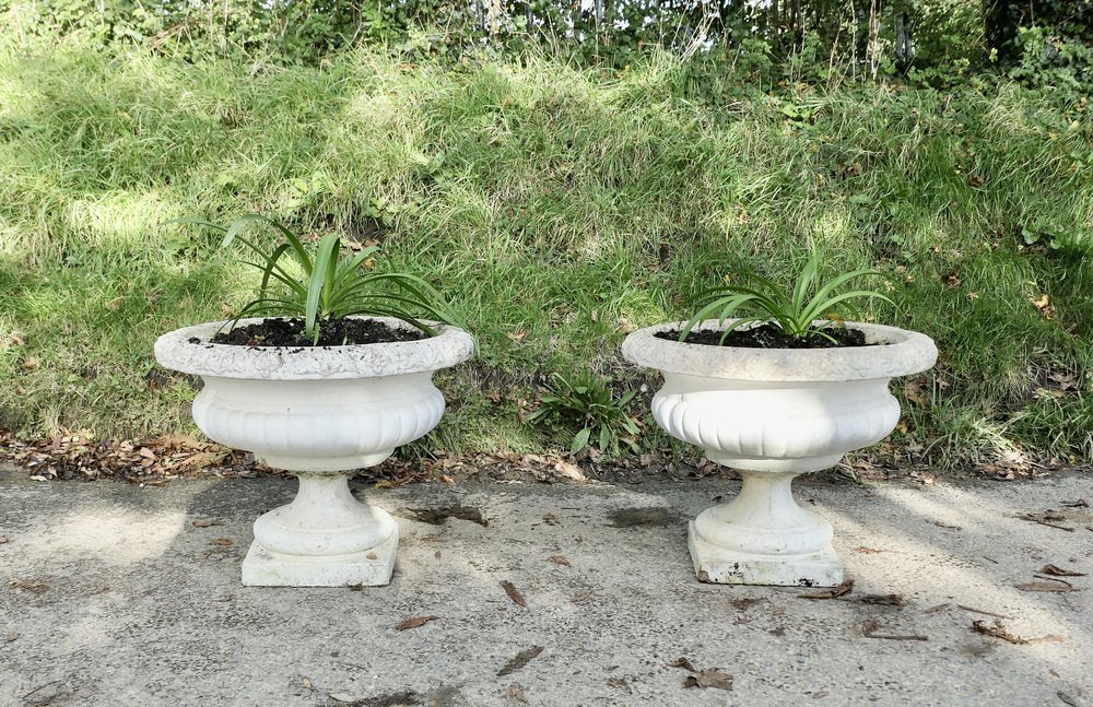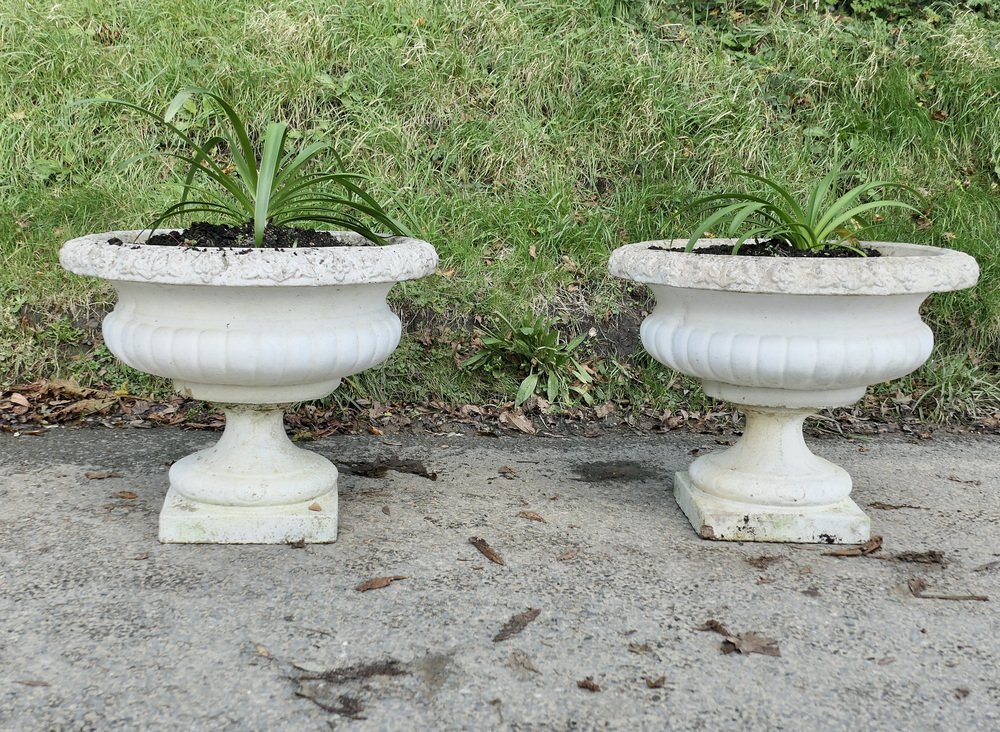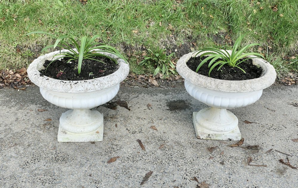 Large Weathered Cast Stone Garden Planters, 1930s, Set of 2