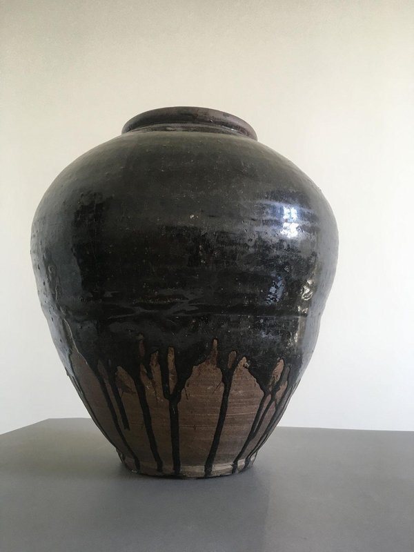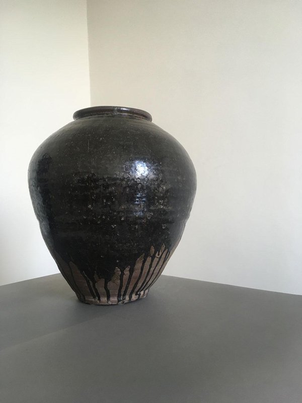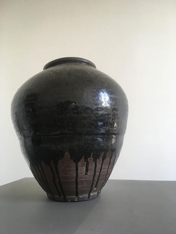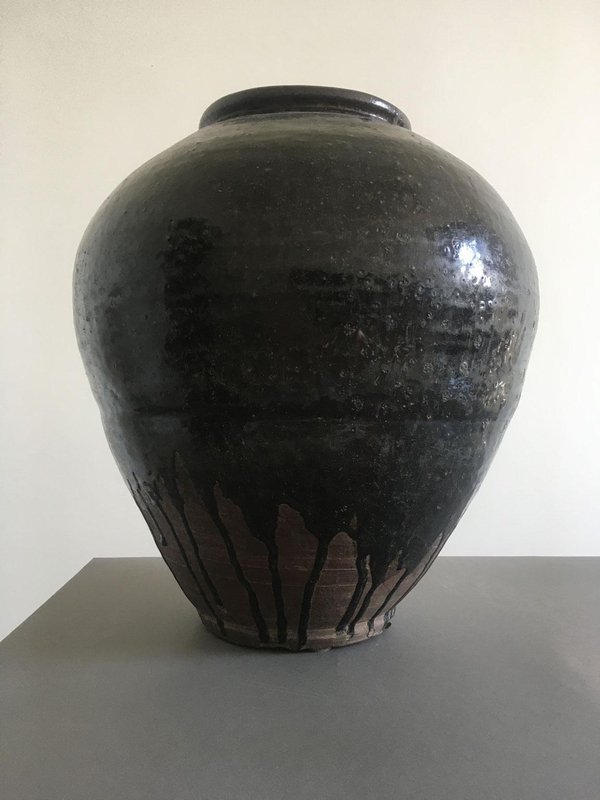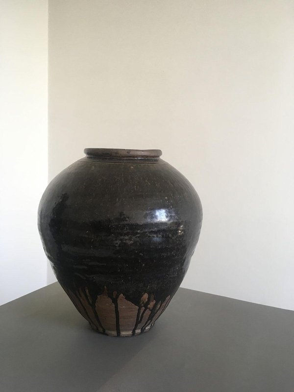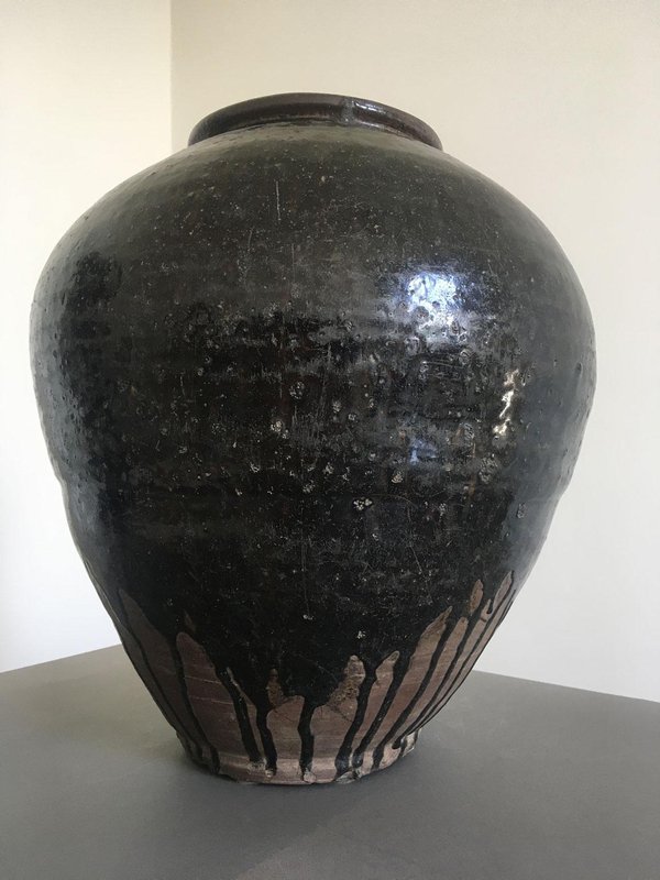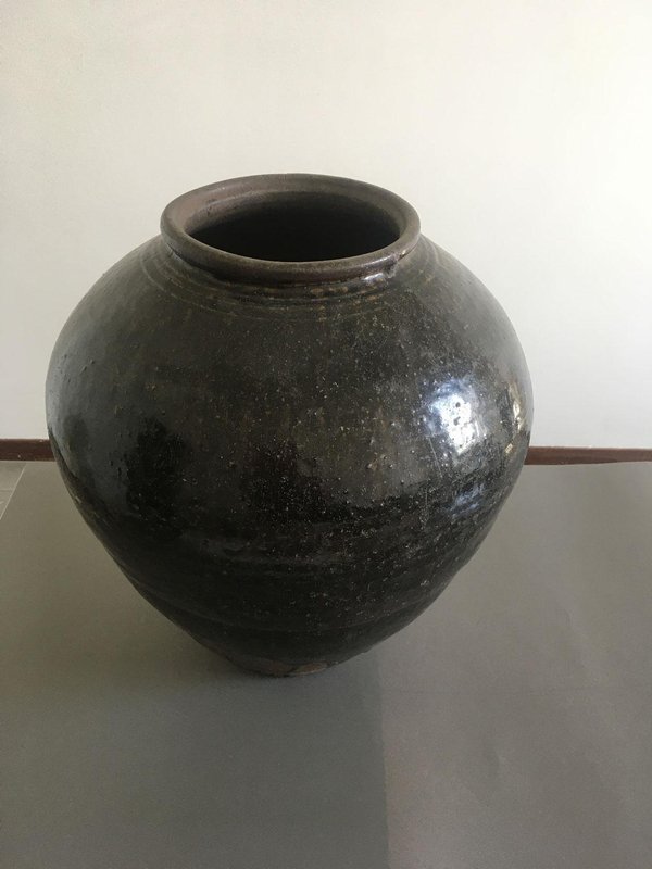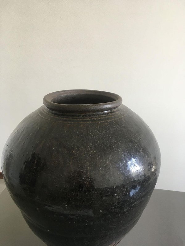 Late 18th Century Khmer Brown Glazed Terracotta Vase