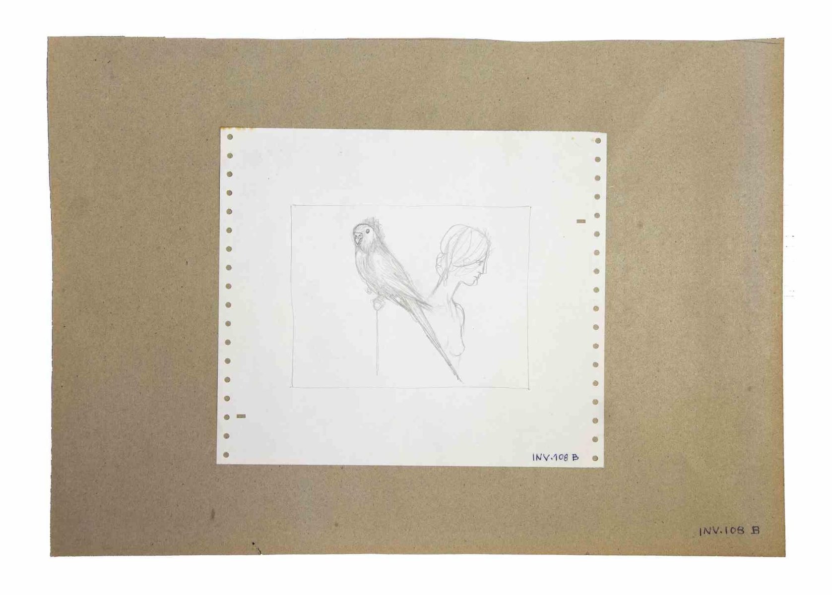 Leo Guida, The Nude and Parrot, Original Drawing, 1970s