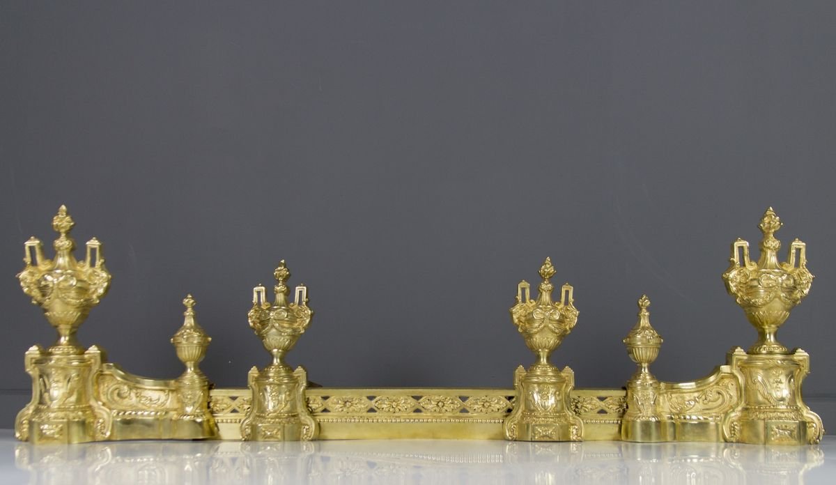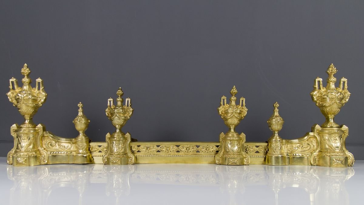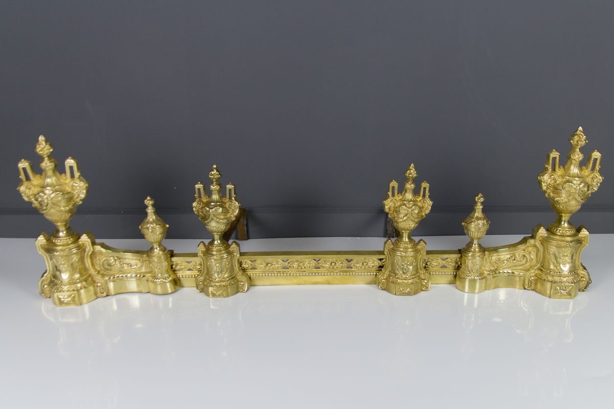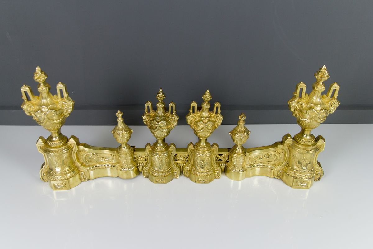 Louis XVI Style Bronze Fireplace Set from Charles Casier, Set of 5