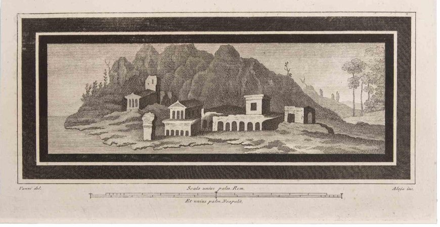 Luigi Aloja, Landscapes with Monuments, Etching, 18th Century